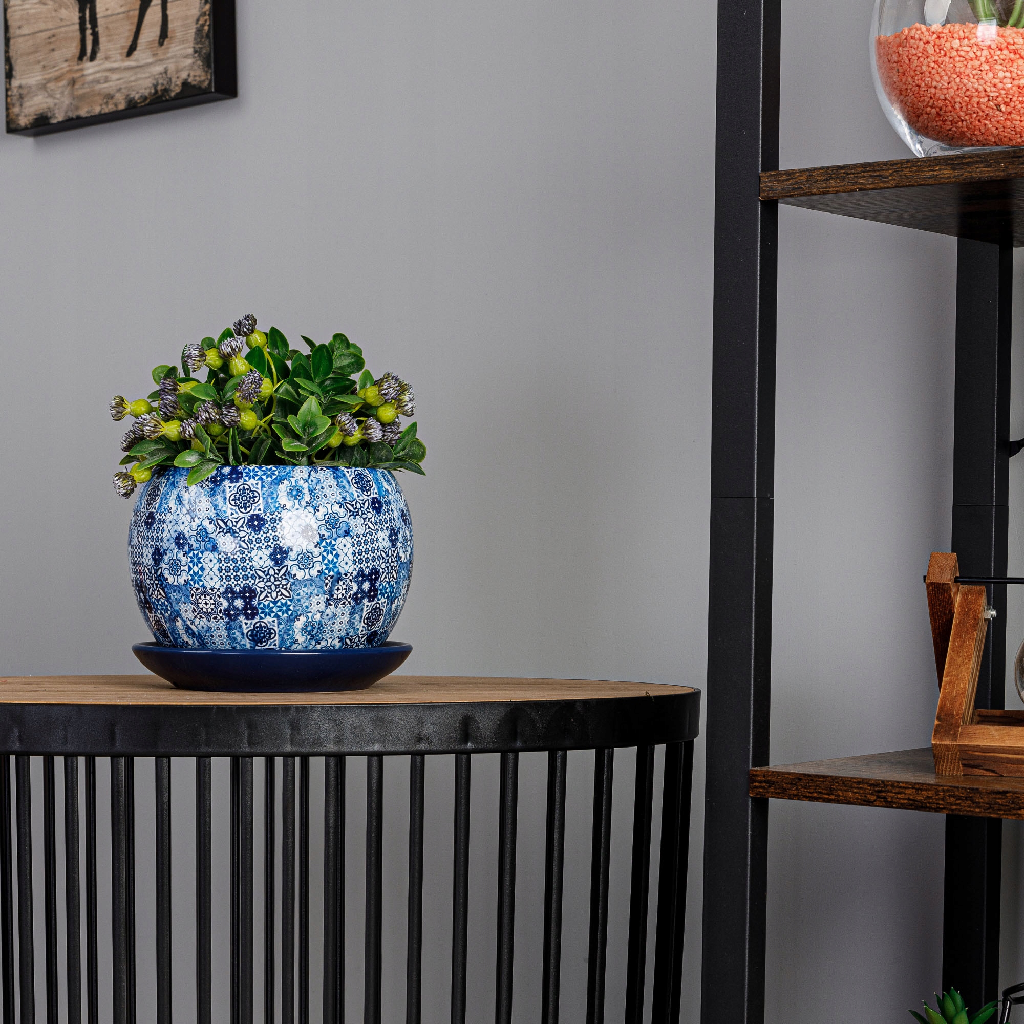 Керамический шарик с круглым горшками Ø16,5 см синей мозаичной стенд