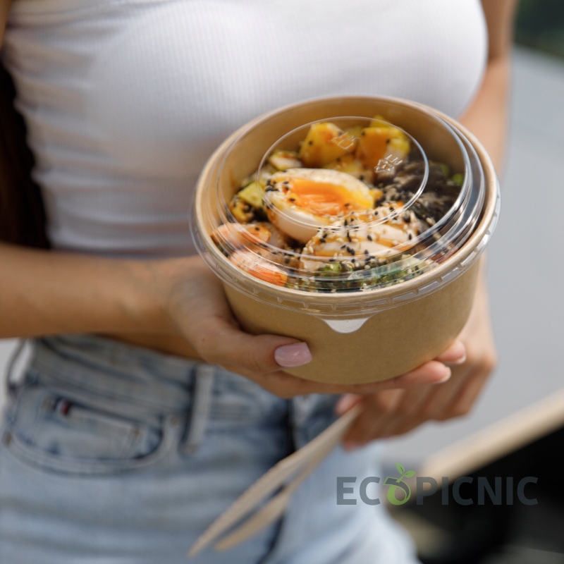 Эта круглая бумага Kraft Bowl отличается гладкой поверхностью, которая приятна на ощупь и ламинирование, что обеспечивает сопротивление влаге и жиру. Он идеально подходит для упаковки и доставки больших порций блюд, таких как боули, салаты, супы, горячий фаст -фуд, основные блюда, десерты и другие продукты питания. Он широко используется в ресторанах и поставках готовых блюд. Максимальный объем 1100 млзмари: верх: 184 мм: 160 ммвисток: 60 мм