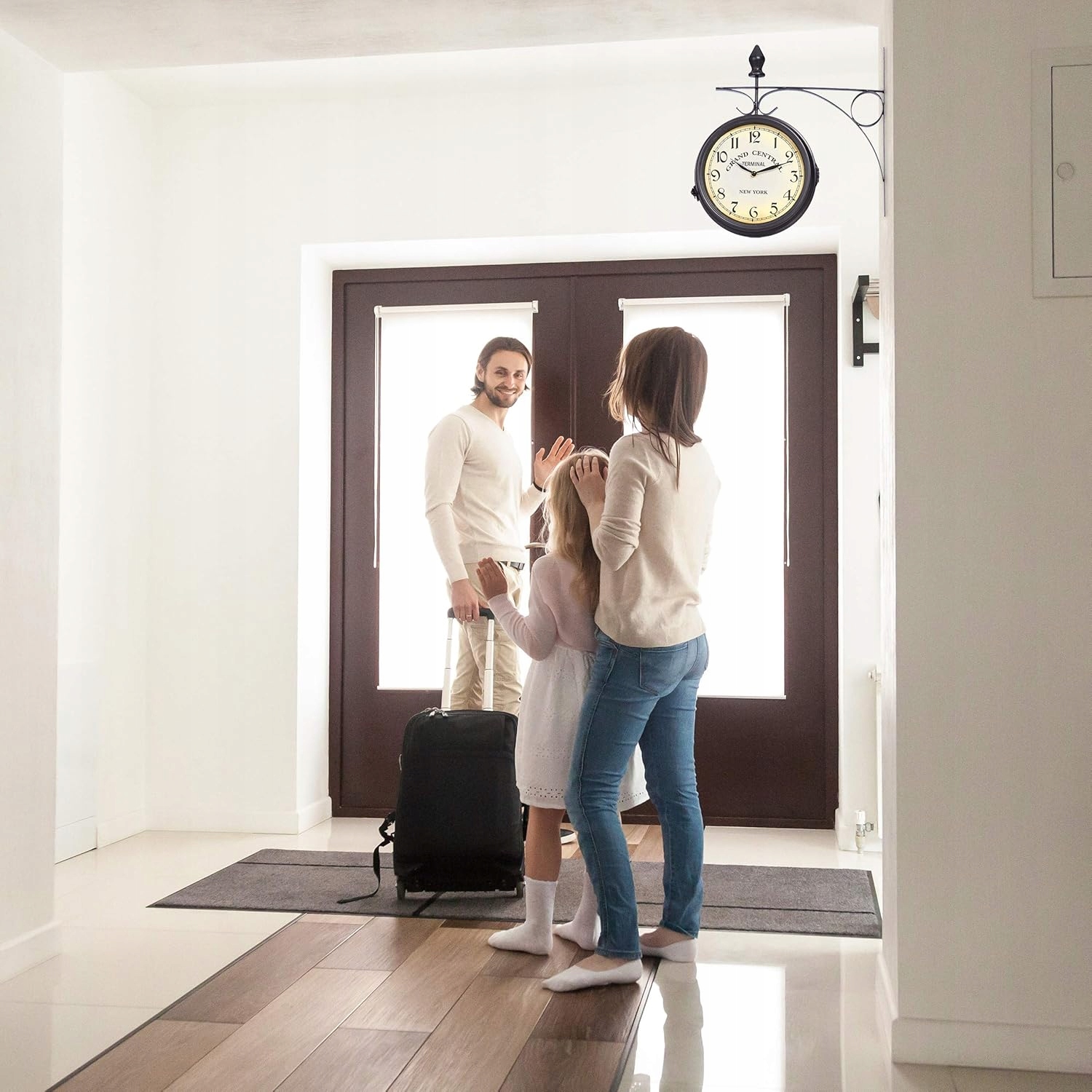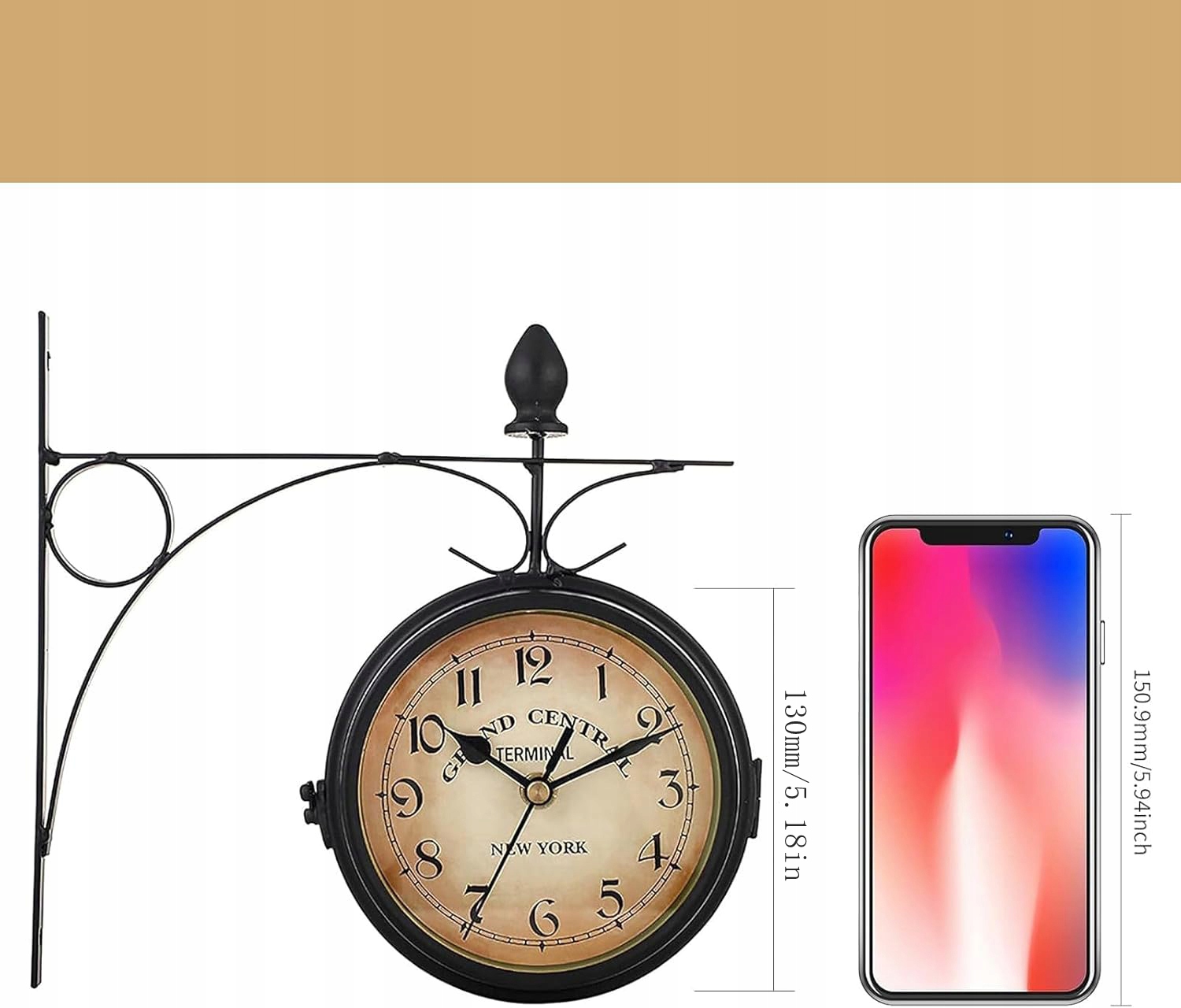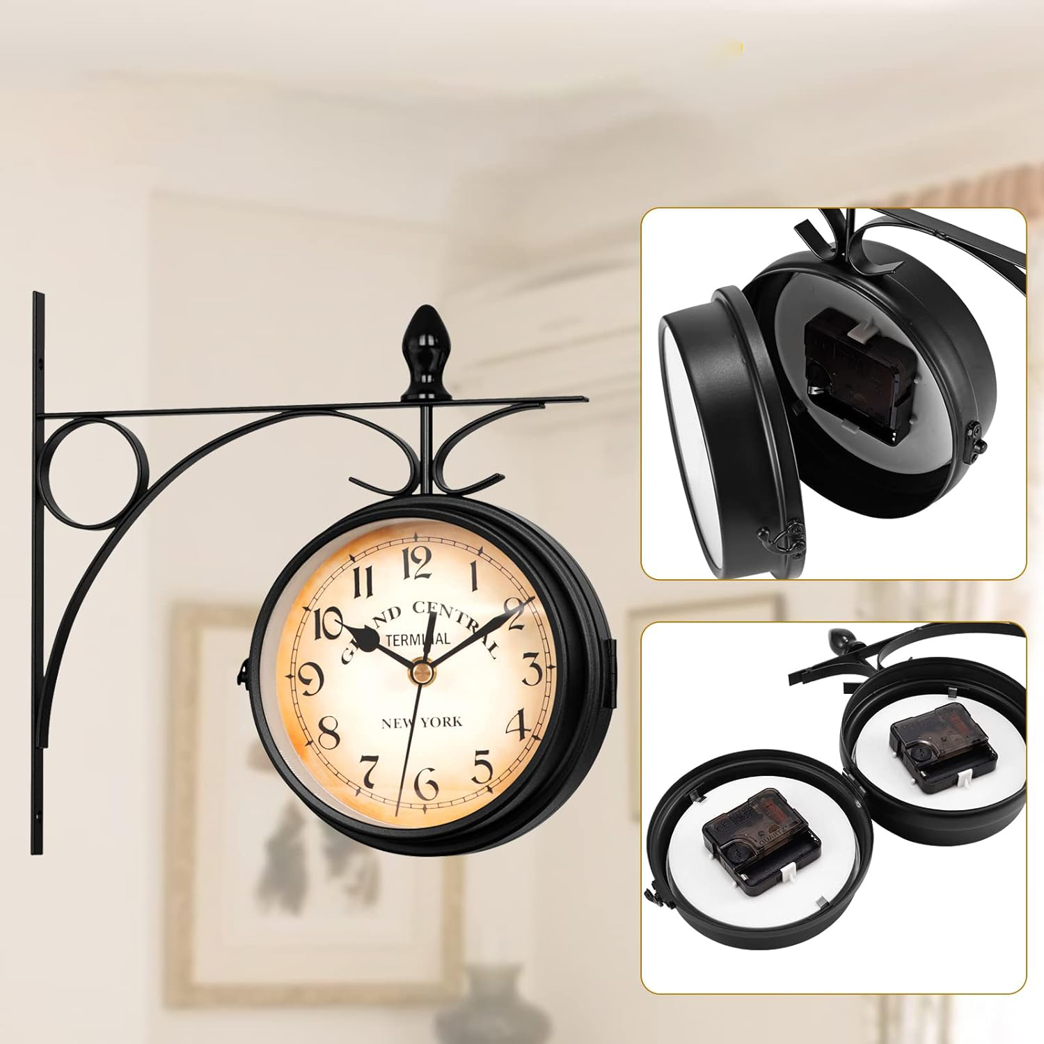 👍👍Двусторонний дизайн: Эти часы в стиле ретро имеют двусторонний дизайн, поэтому видны обе стороны, что очень практично. Декоративные настенные часы в стиле ретро на вокзале. их можно легко закрепить на стене, что делает их идеальными для установки в помещении и на открытом воздухе.
