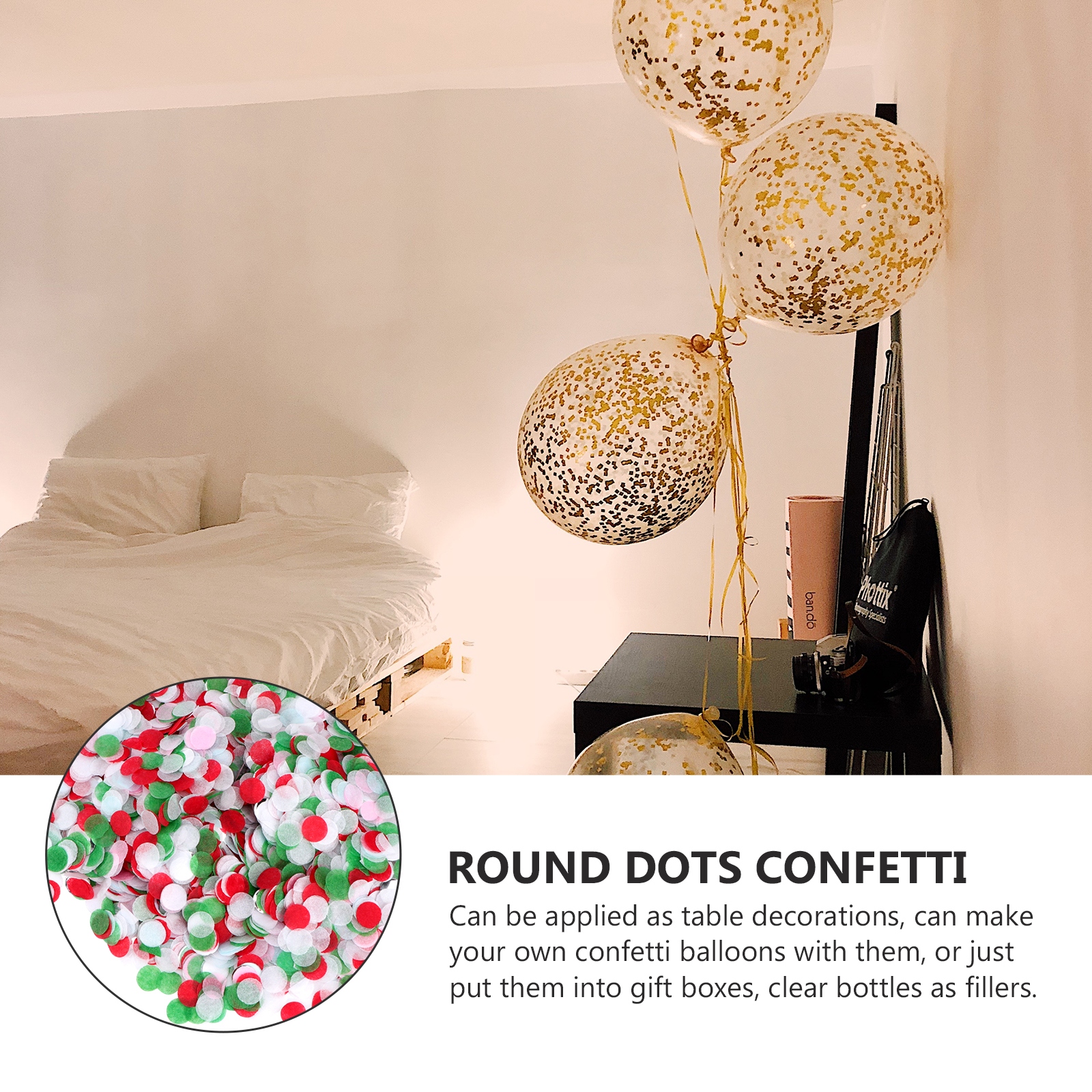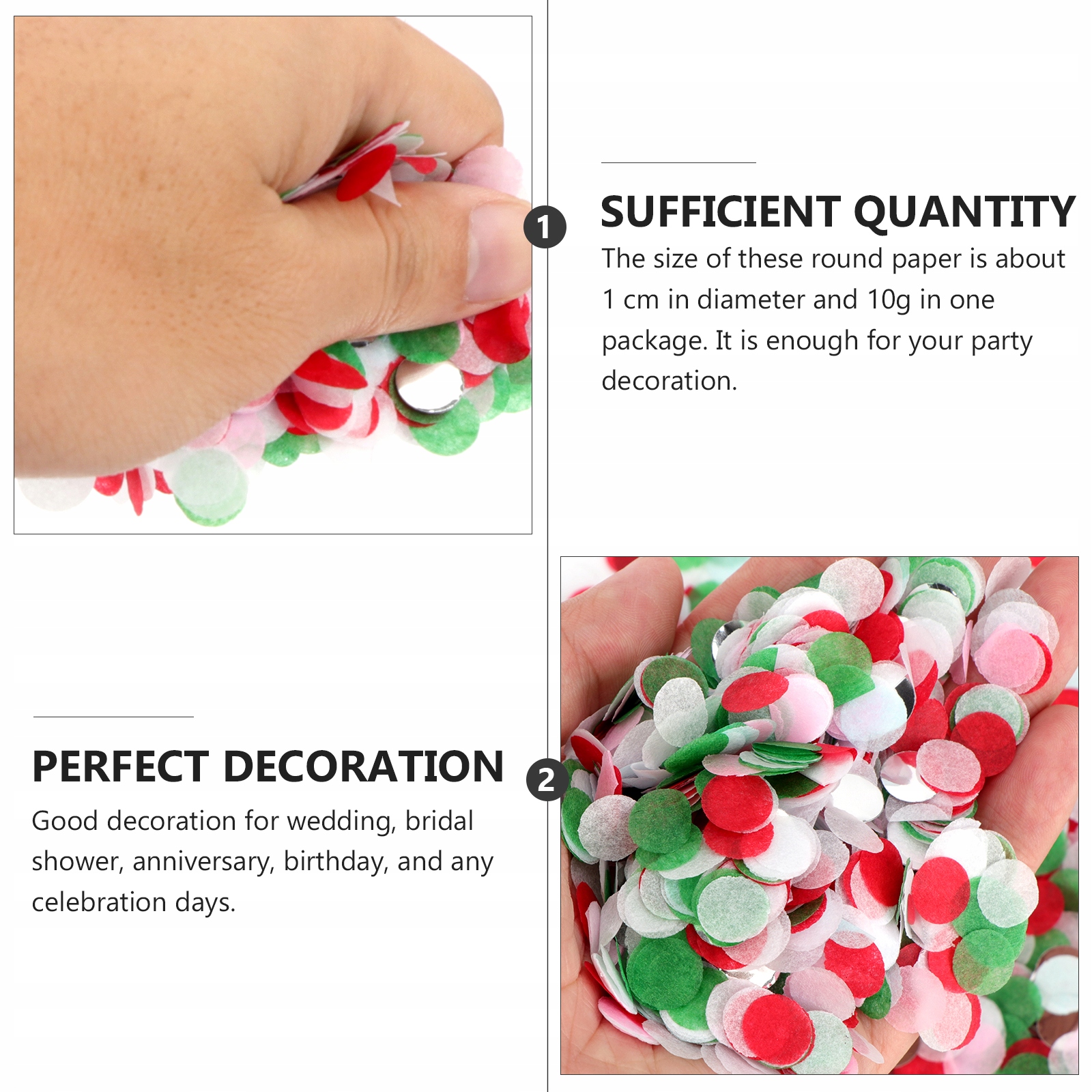 Этот продукт представляет собой круглое конфетти в горошек для украшения и праздника. Изготовлен из высококачественного материала, он долговечен для многократного использования. Красочные конфетти более нежные и привлекательные. С этими конфетти легко создать хорошую атмосферу на дне рождения, вечеринке, свадьбе и т. д.