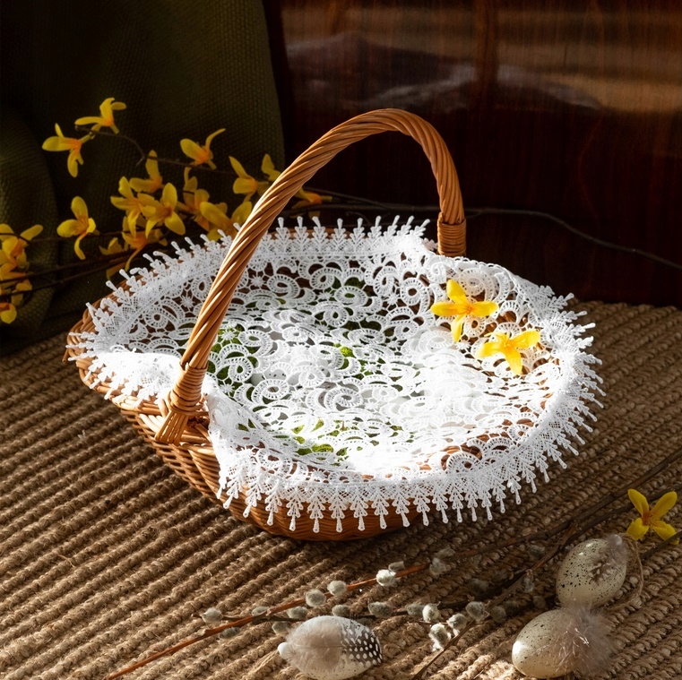 Круглая салфетка для пасхальной корзины до święconka Большой 60 см белый