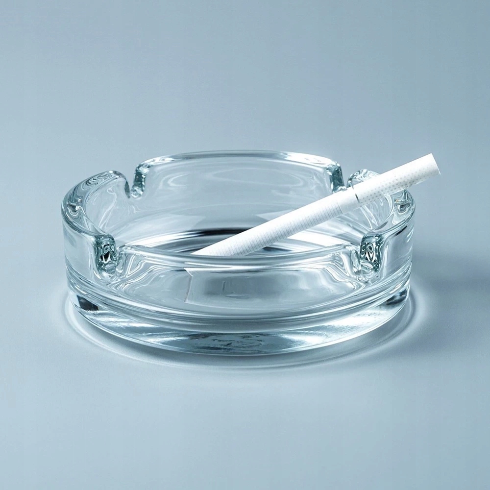Классическая круглая пепельница из стекла в прозрачном цвете. В идеале подходит для использования дома, в саду, баре и ресторанах.