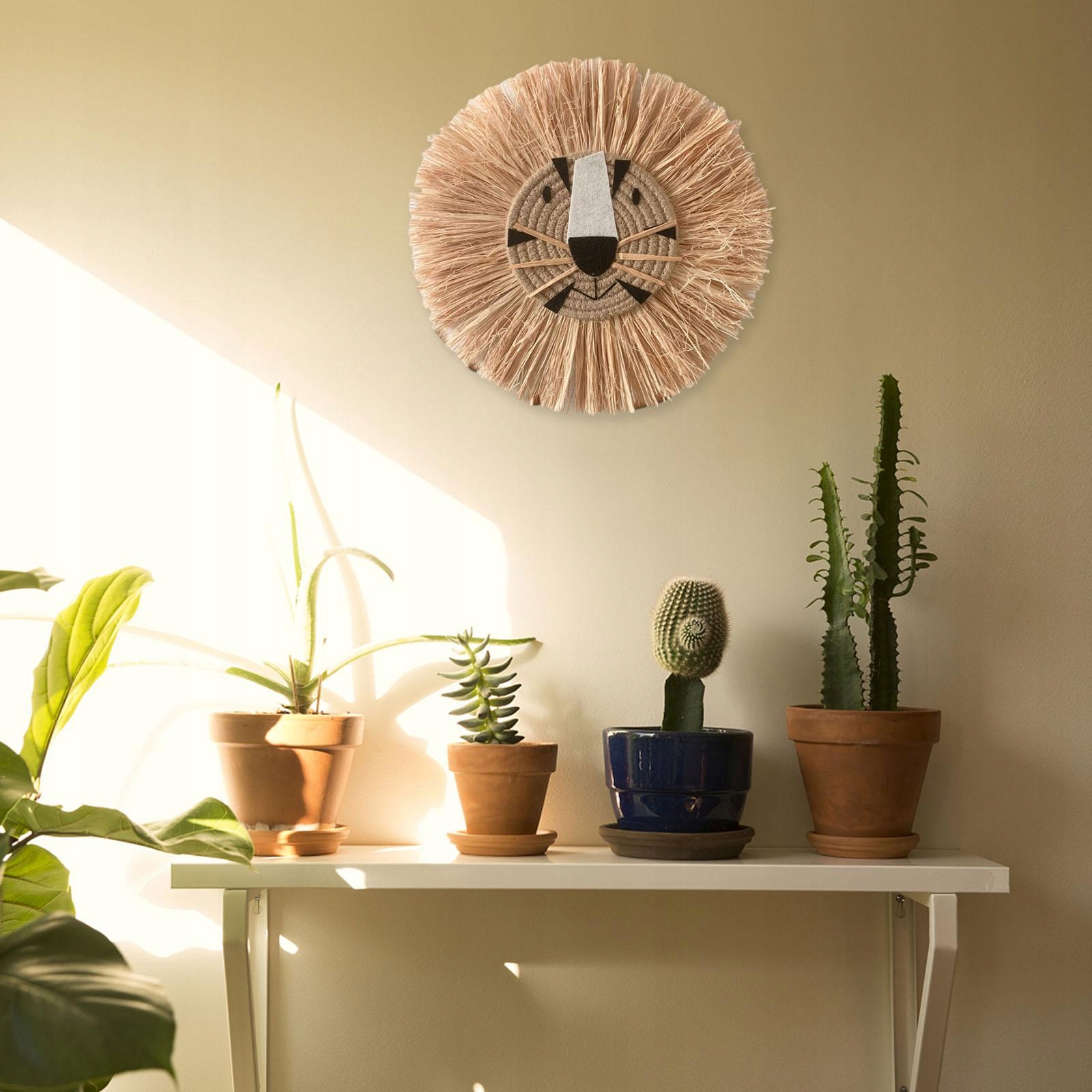 Круглый гобелен из соломы с изображением льва, круглый гобелен, голова животного, ротанг, ручная работа D