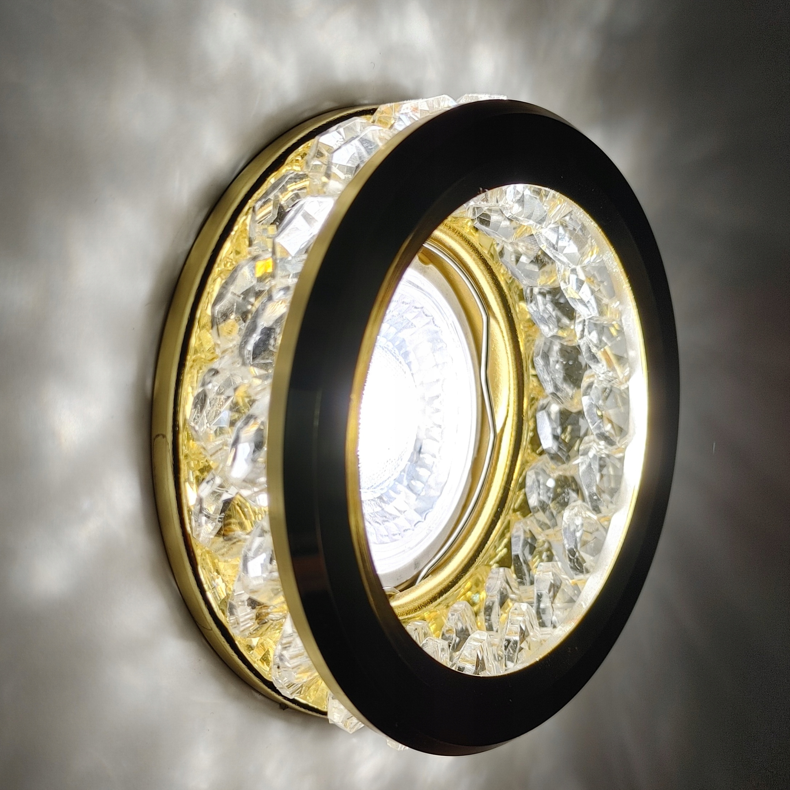 Круглий стельовий світильник із галогенного скла, кришталю золота, GU10