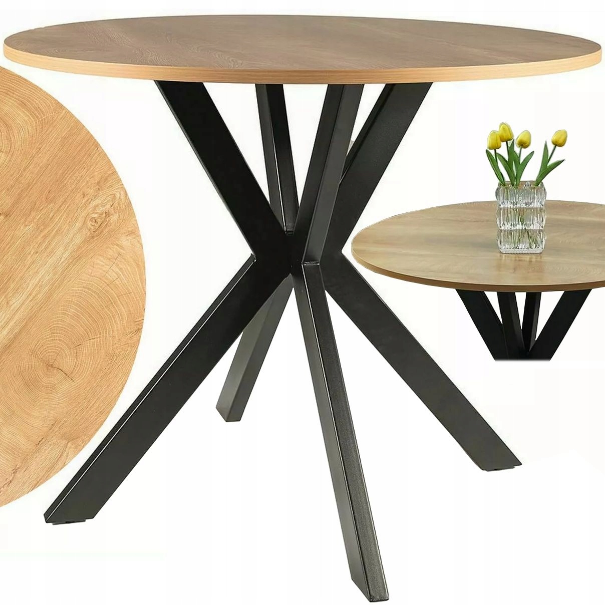 КРУГЛИЙ СТІЛ ДЛЯ КУХНІ ВІТАЛЬНІ TALIA II дуб/чорний Signal