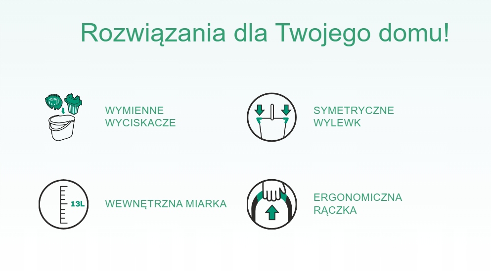 ✴ Внутренняя измерительная чашка : практическая измерительная чашка внутри ведра позволяет точно дозировать воды и чистящих средств, что позволяет лучше управлять моющим средством и водой во время очистки. Ручка : ведро было оснащено удобной эргономичной ручкой, которая обеспечивает удобную и надежную сцепление, что облегчает ношение даже полного ведра. Профилированная ручка сводит к минимуму нагрузку руки при переносе.