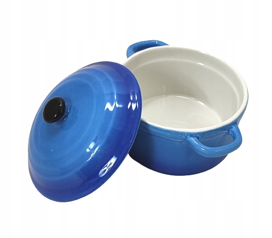 Круглое тепло -устойчивое сосуд для выпечки + покрывает 200 C ° синий 0,2 л.