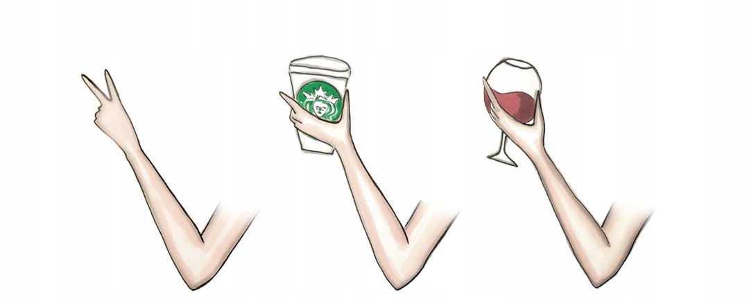 - Предмет в руке (кофе, вино, пустой предмет)