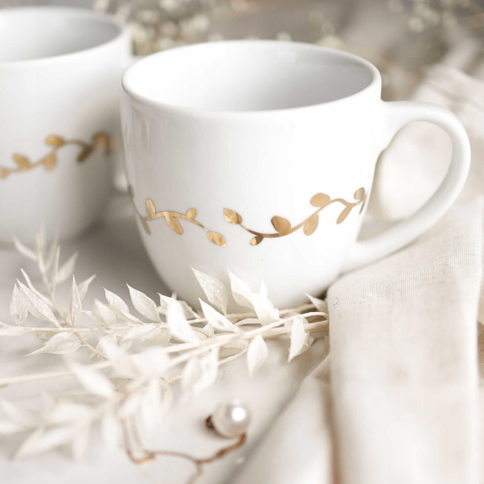 Кружка 300 мл - прикрашена золотом - листям