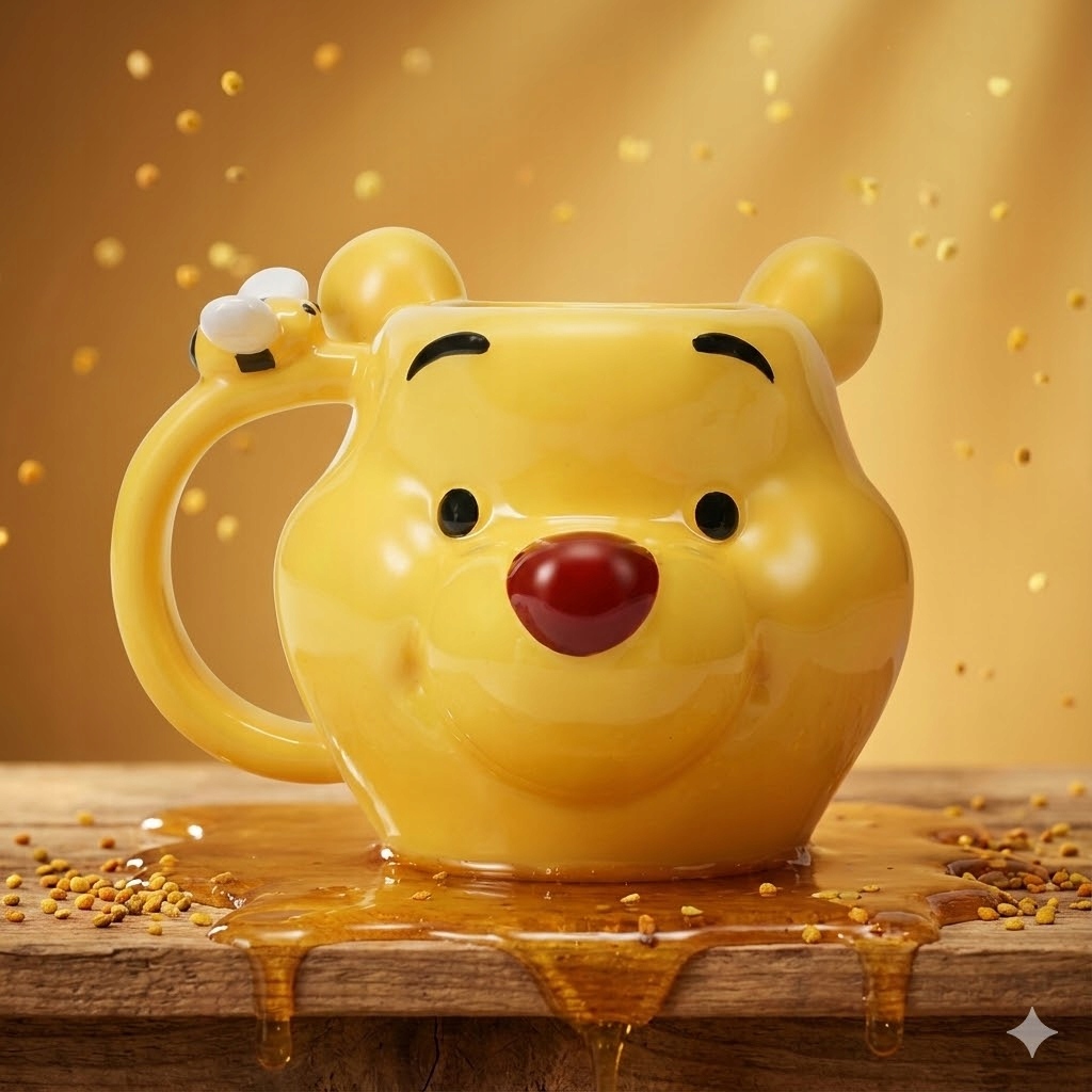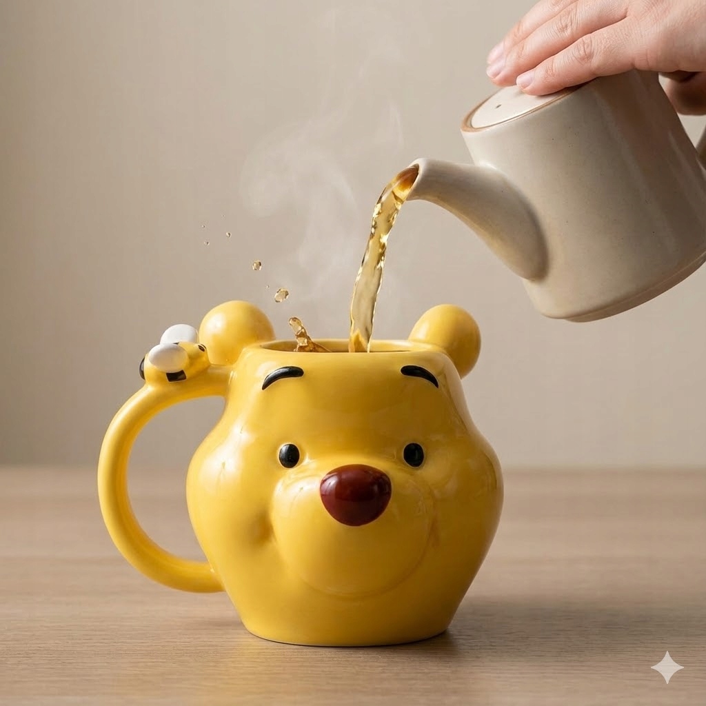 Это 3D-кружка в виде Винни-Пуха, отлично подходит для кофе, чая и какао, а также в качестве коллекционного гаджета. Керамика хорошо лежит в руке, а резная форма эффектно смотрится на полке и в уголке Диснея дома.