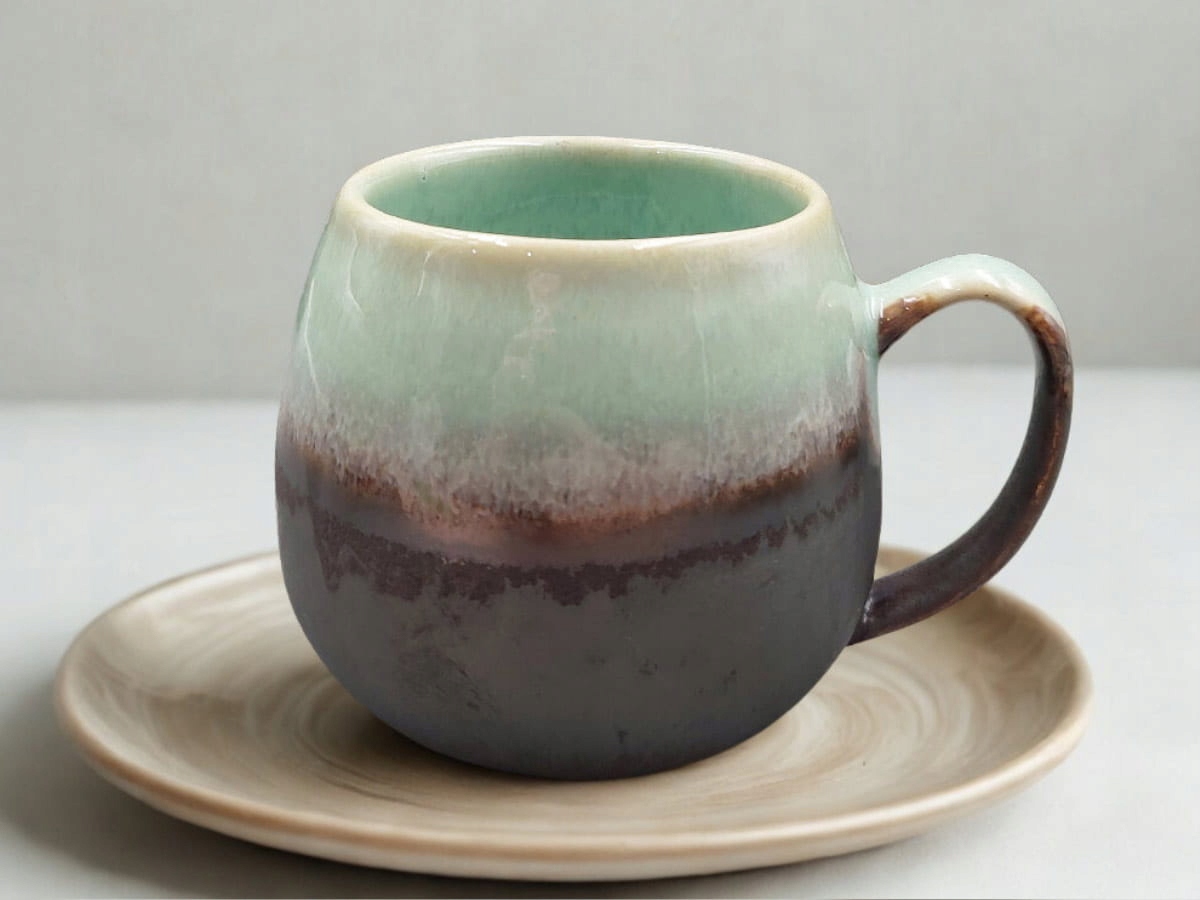 Серия «Агат» восхищает сочетанием зеленого и коричневого в естественной композиции. Гладкая глазурь в сочетании с необработанной матовой поверхностью придает ей характер. Кружка идеально подходит для гостиниц, пиццерий, ресторанов или отелей.