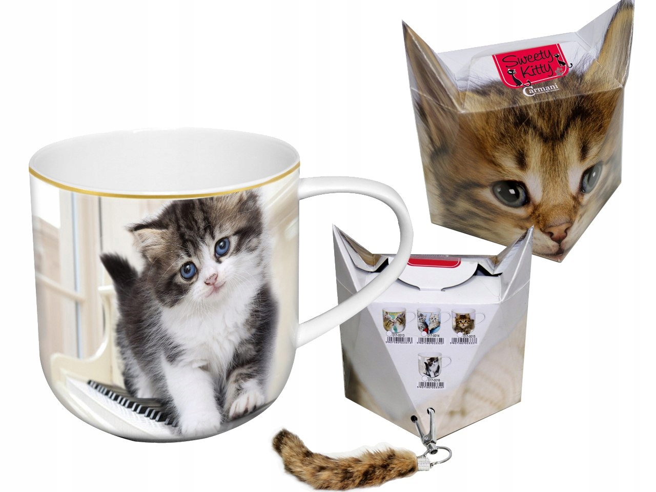 Большая кружка из высококачественного легкого фарфора, украшенная кошачьим мотивом. В комплект входит декоративный брелок в виде черного хвостика. Набор из коллекции Carmani Sweety Kittie. Оригинальный продукт – разрешен для контакта с пищевыми продуктами. Одобрения: ZWO/GP/AT9000