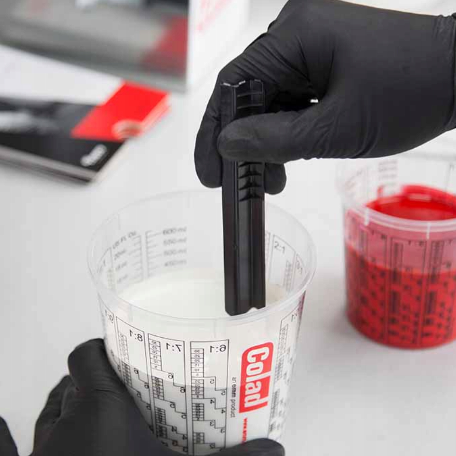 Кружки для смешивания лаков Colad изготовлены из специального высококачественного полипропилена, обеспечивающего постоянную жесткость и прозрачность. Это гарантирует хорошую видимость и разборчивость шкалы пропорций смешивания как внутри, так и снаружи стаканчика.