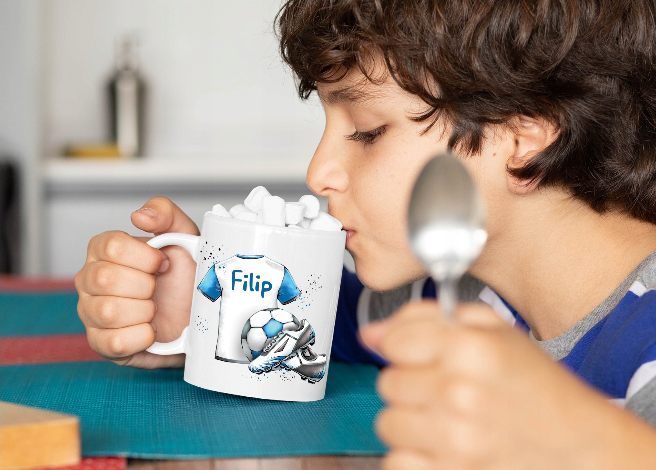 КРУЖКА для ФУТБОЛИСТА, синя футболка + будь-яке ім'я