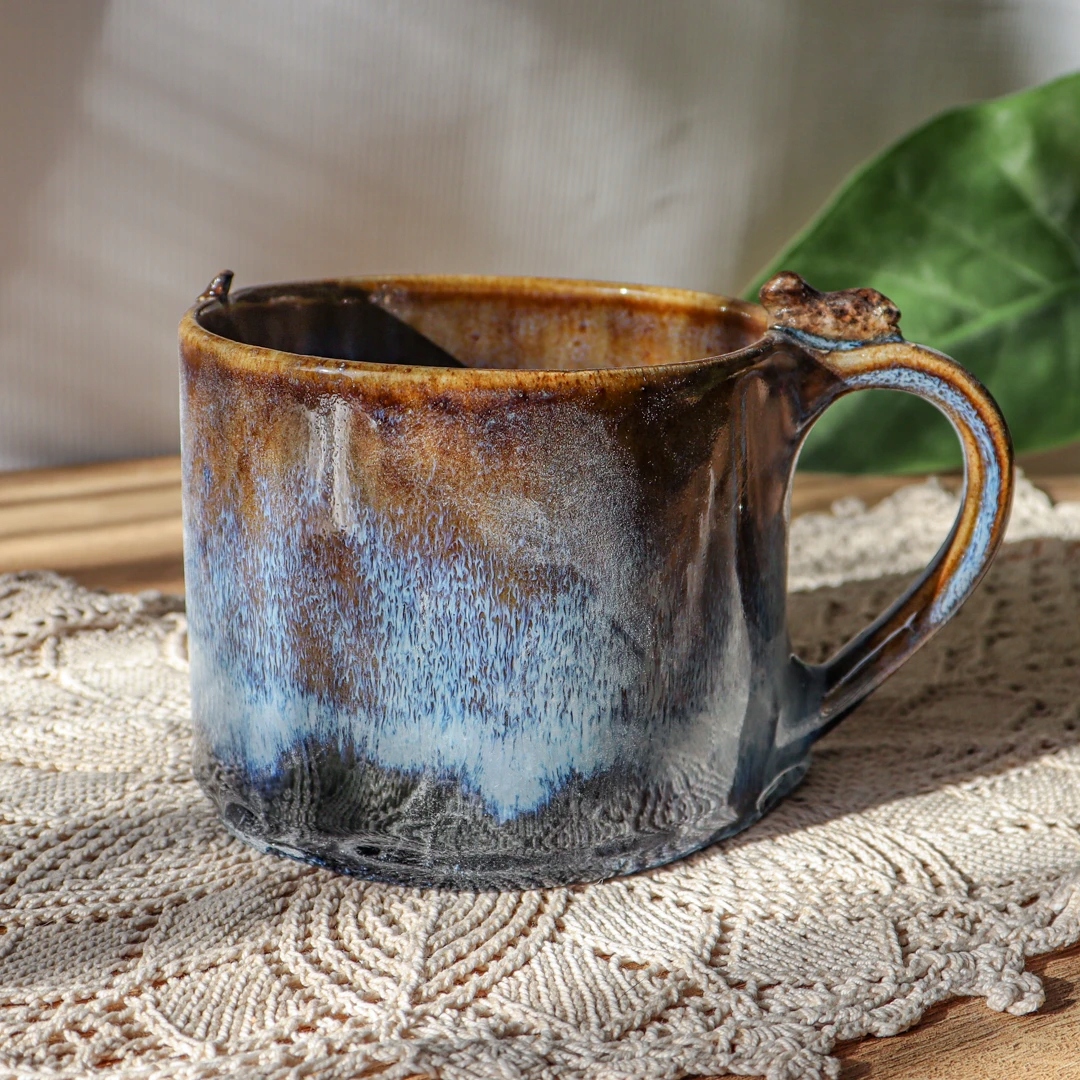 Для любителей кофе и чая, а также любителей оригинальных кружек и животных большая керамическая кружка - Котенок с птичкой, 500 мл. Ручная работа: милый бежево-серый котенок лежит на ухе и смотрит на маленькую птичку, сидящую напротив. Покрыта смесью коричневой и синей глазури, создающей оригинальный эффект. Кружка имеет большую ручку, которая идеально лежит в руке, а ее размеры примерно 10 см в диаметре и 8 см в высоту позволяют с комфортом наслаждаться любимым напитком.