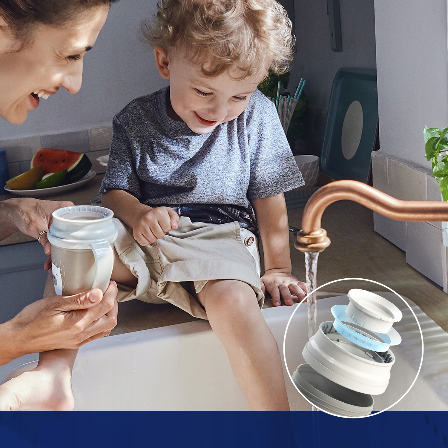 Благодаря инновационному уплотнению жидкость может всасываться из любой точки по краям. Это приучает ребенка к естественному, взрослому способу питья из открытой чашки и стакана, но не проливая.