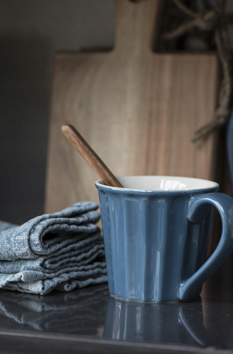 Кружка изготовлена из керамогранита красивого синего цвета.