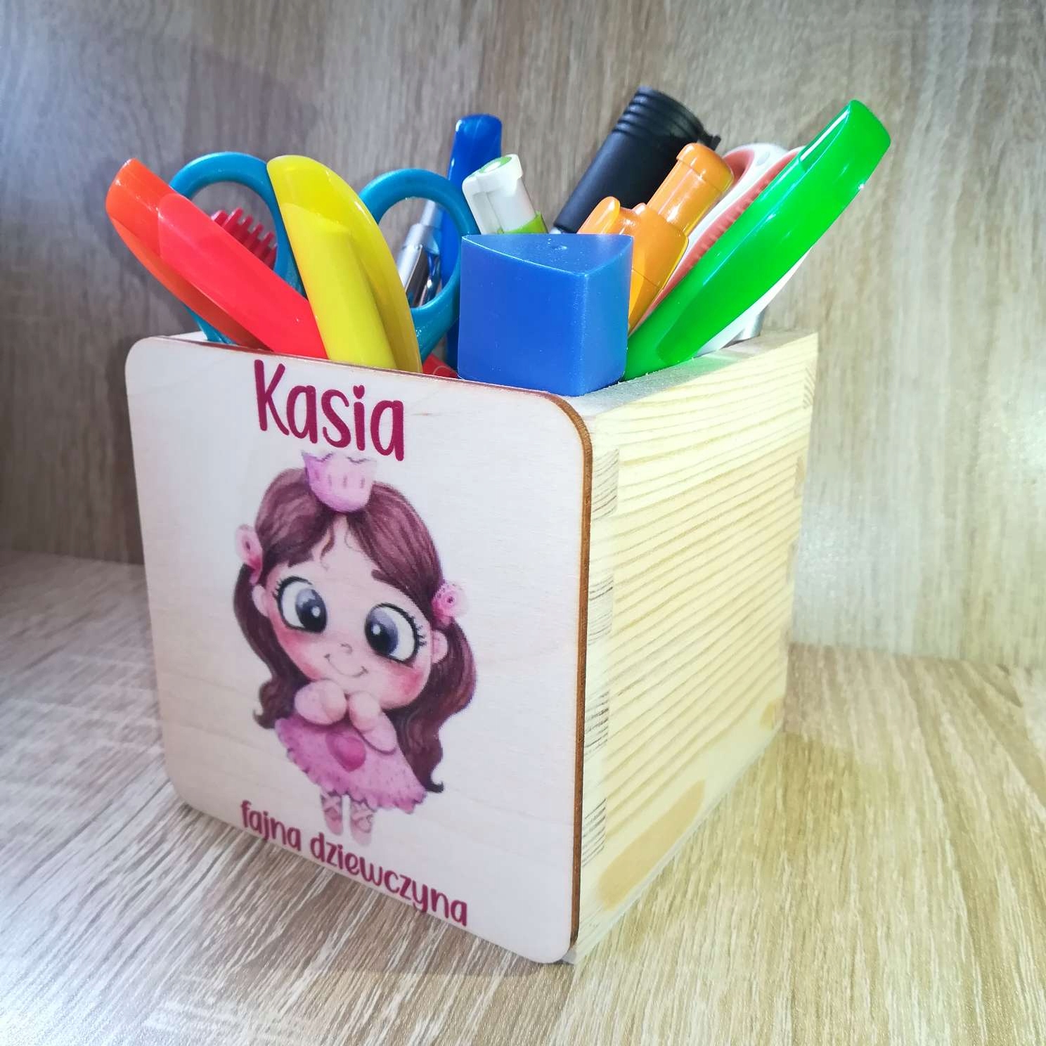 - Красивая деревянная кружка для канцелярских принадлежностей