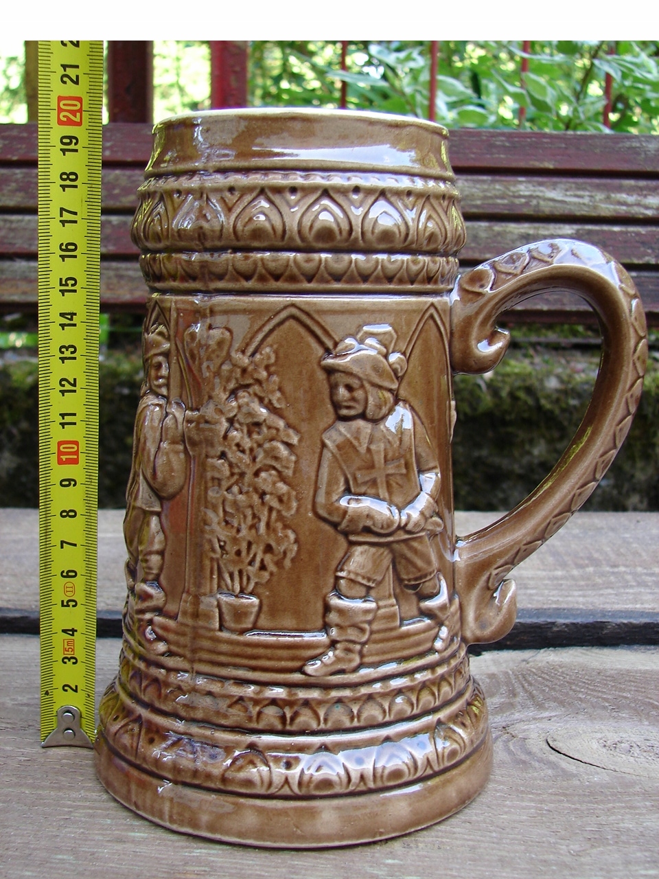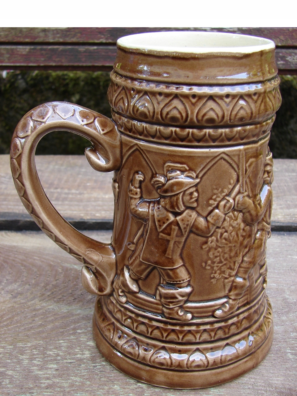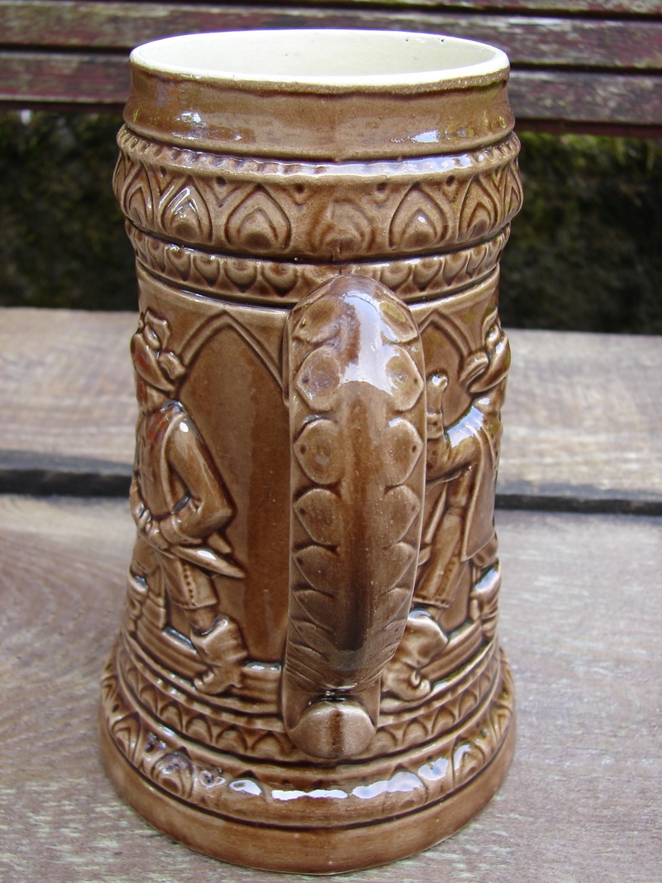 Кружка украшена жанровой сценой в виде барельефа.