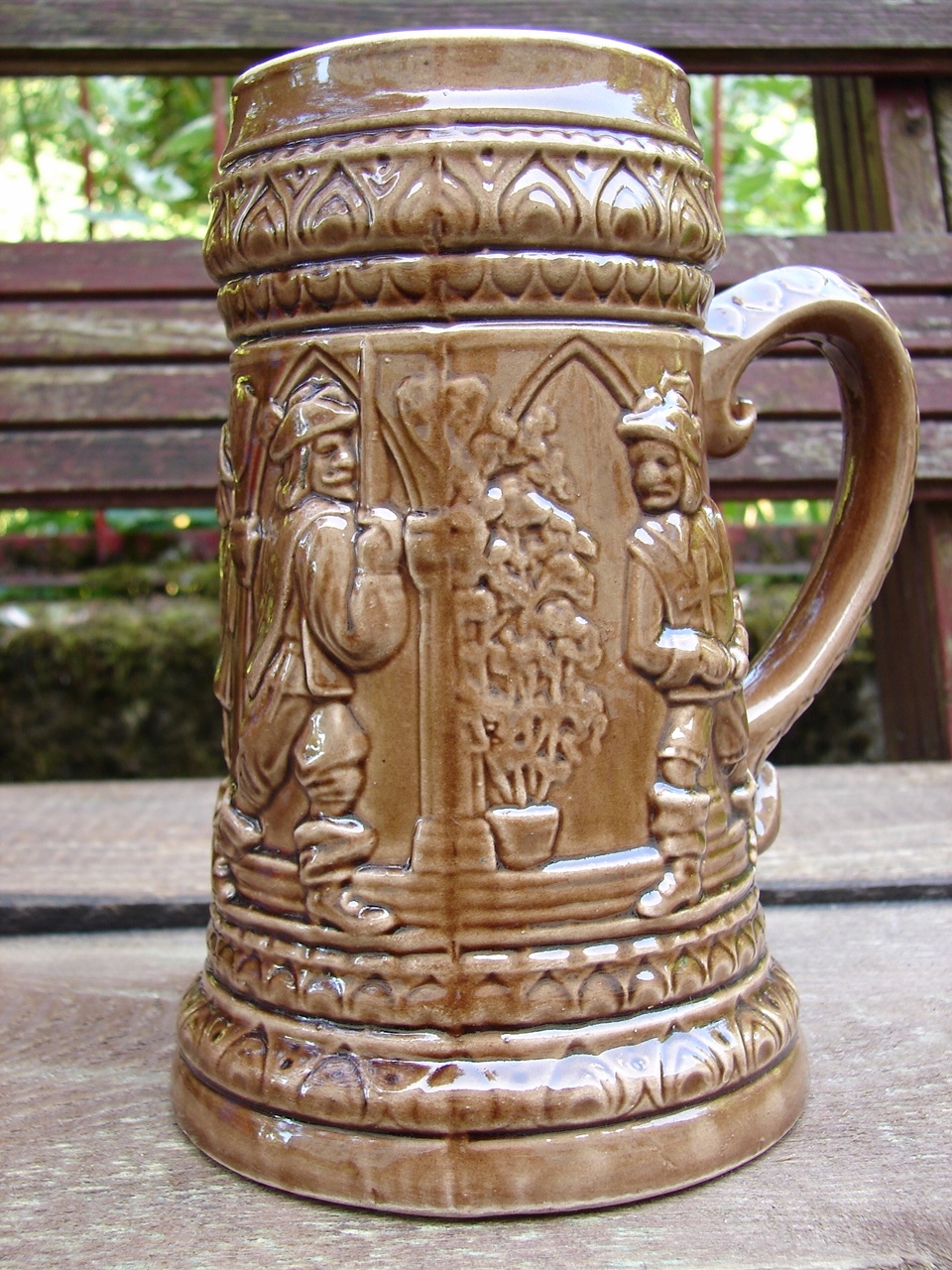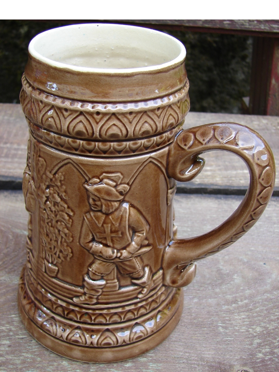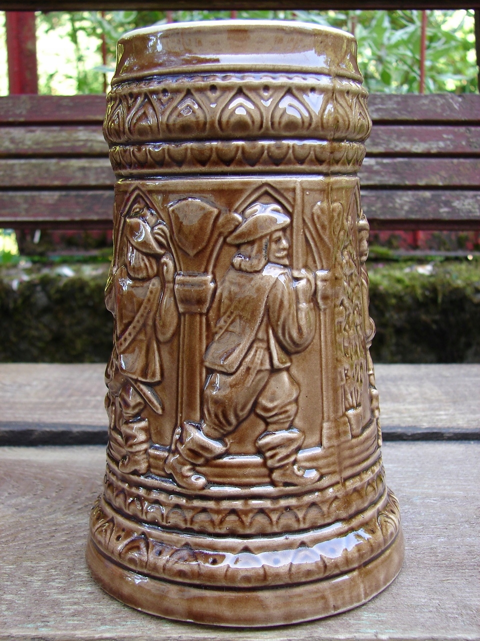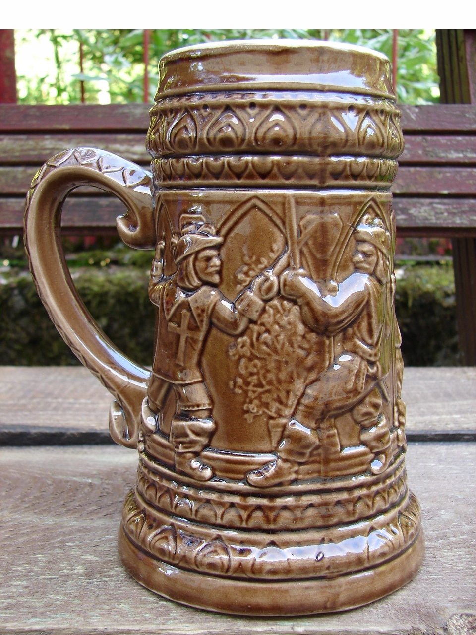 Кружка украшена жанровой сценой в виде барельефа.