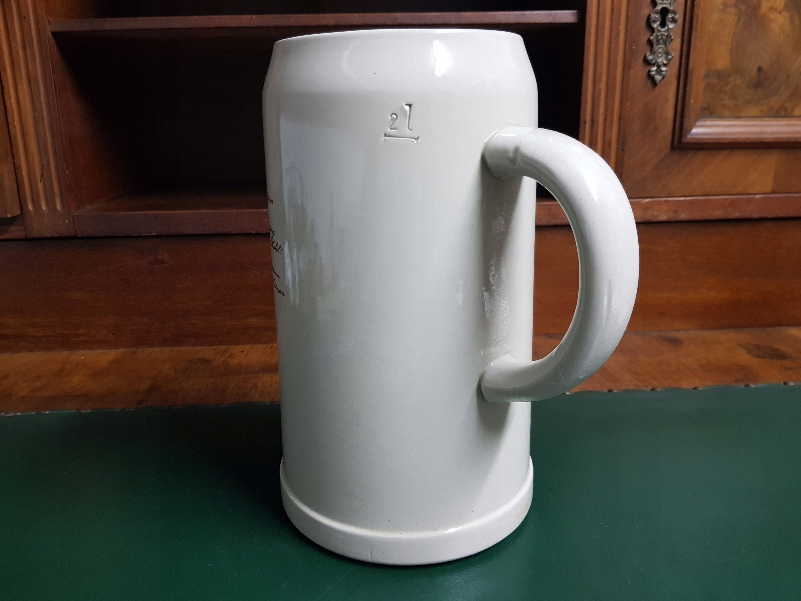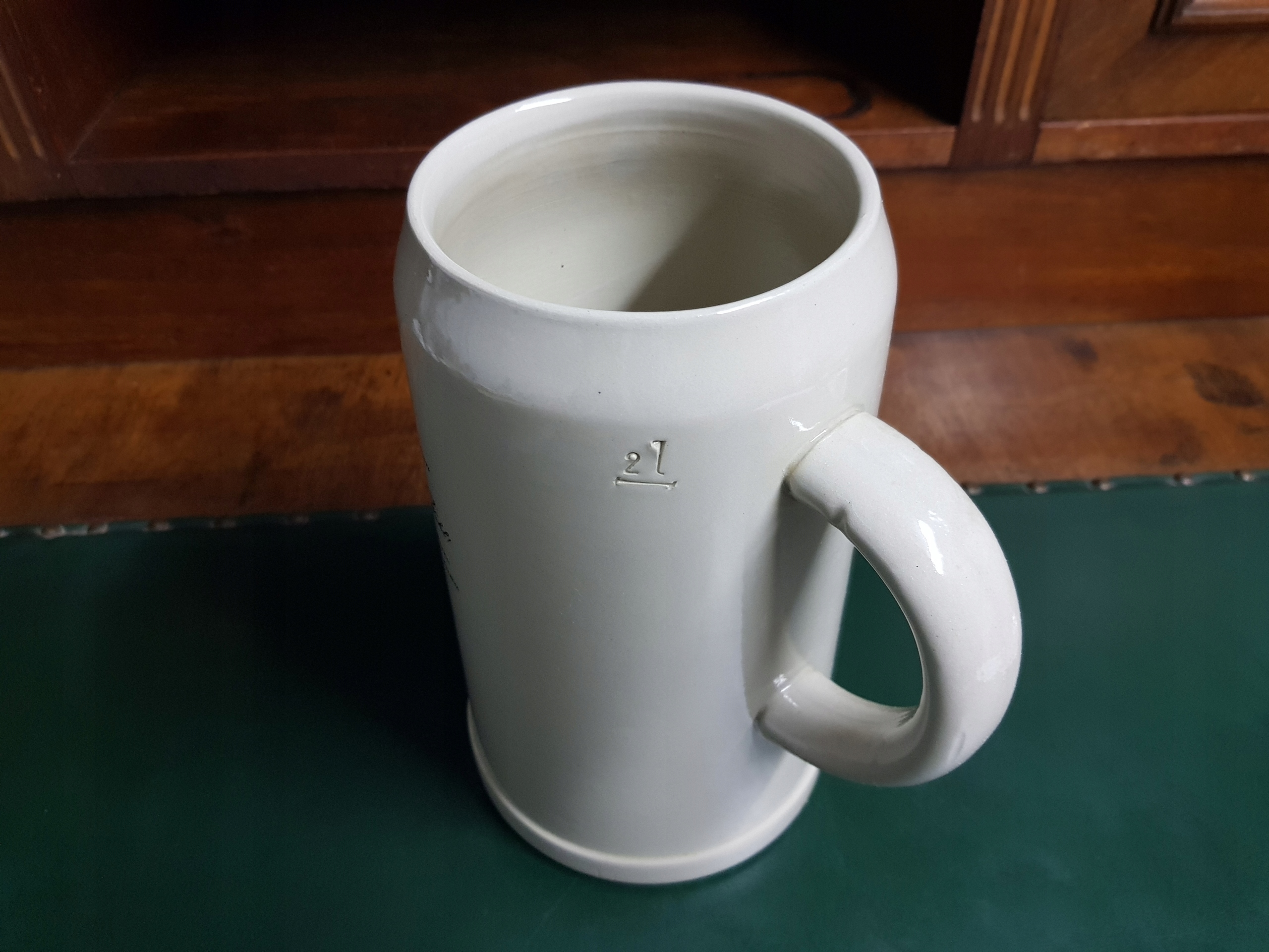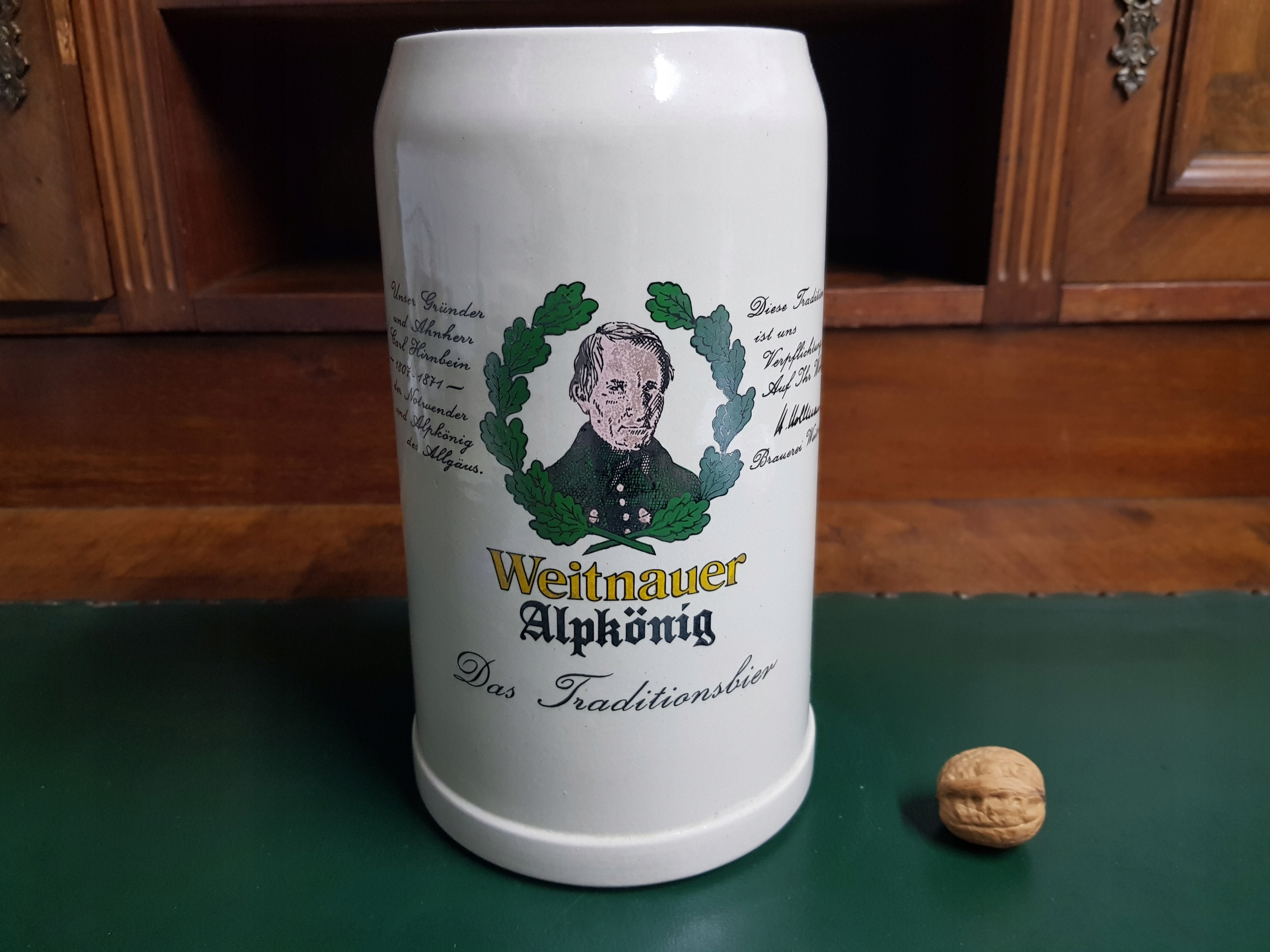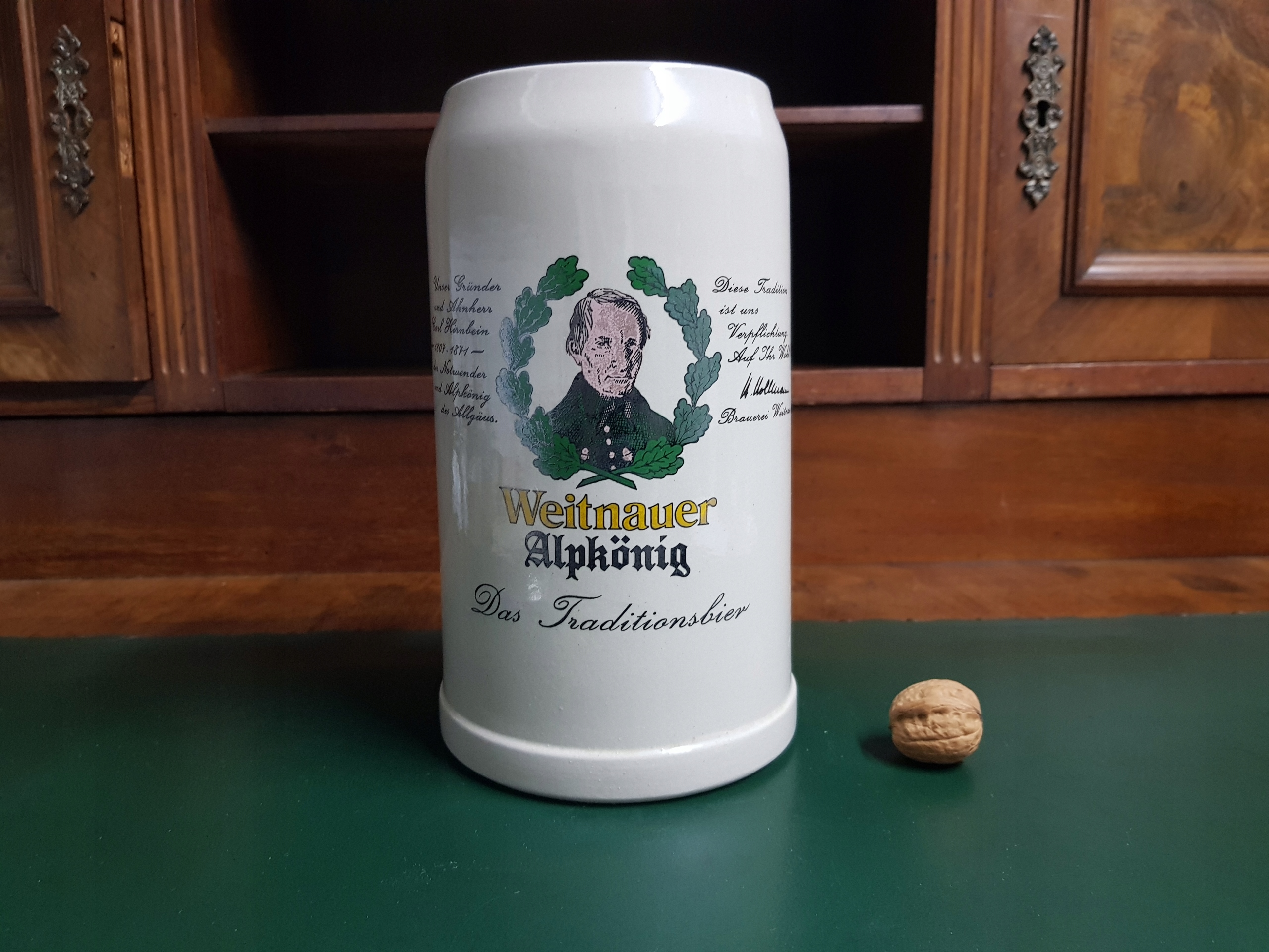 Предмет аукциона — большая керамическая кружка Weitnauer Alpkonig, емкостью 2 л, подпись на основании.