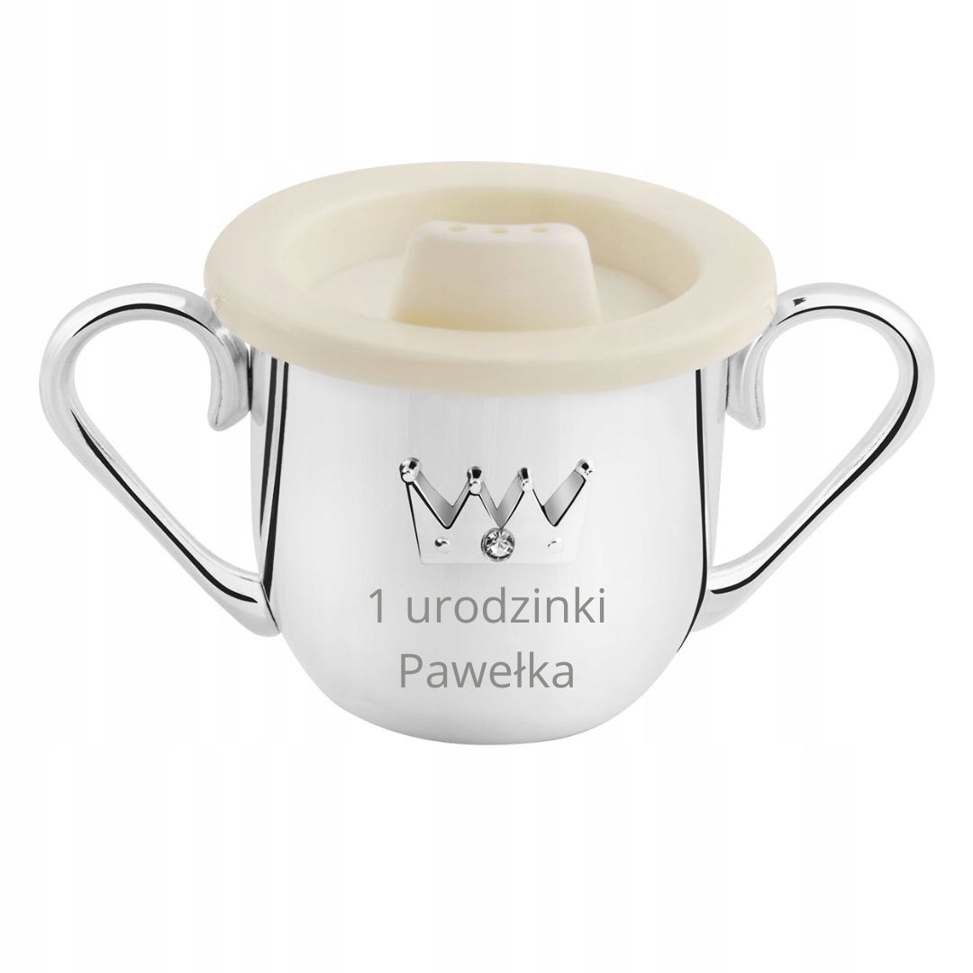 Посеребренная чашка-поильник с гравировкой подарок на годик, день рождения, крещение ребенка