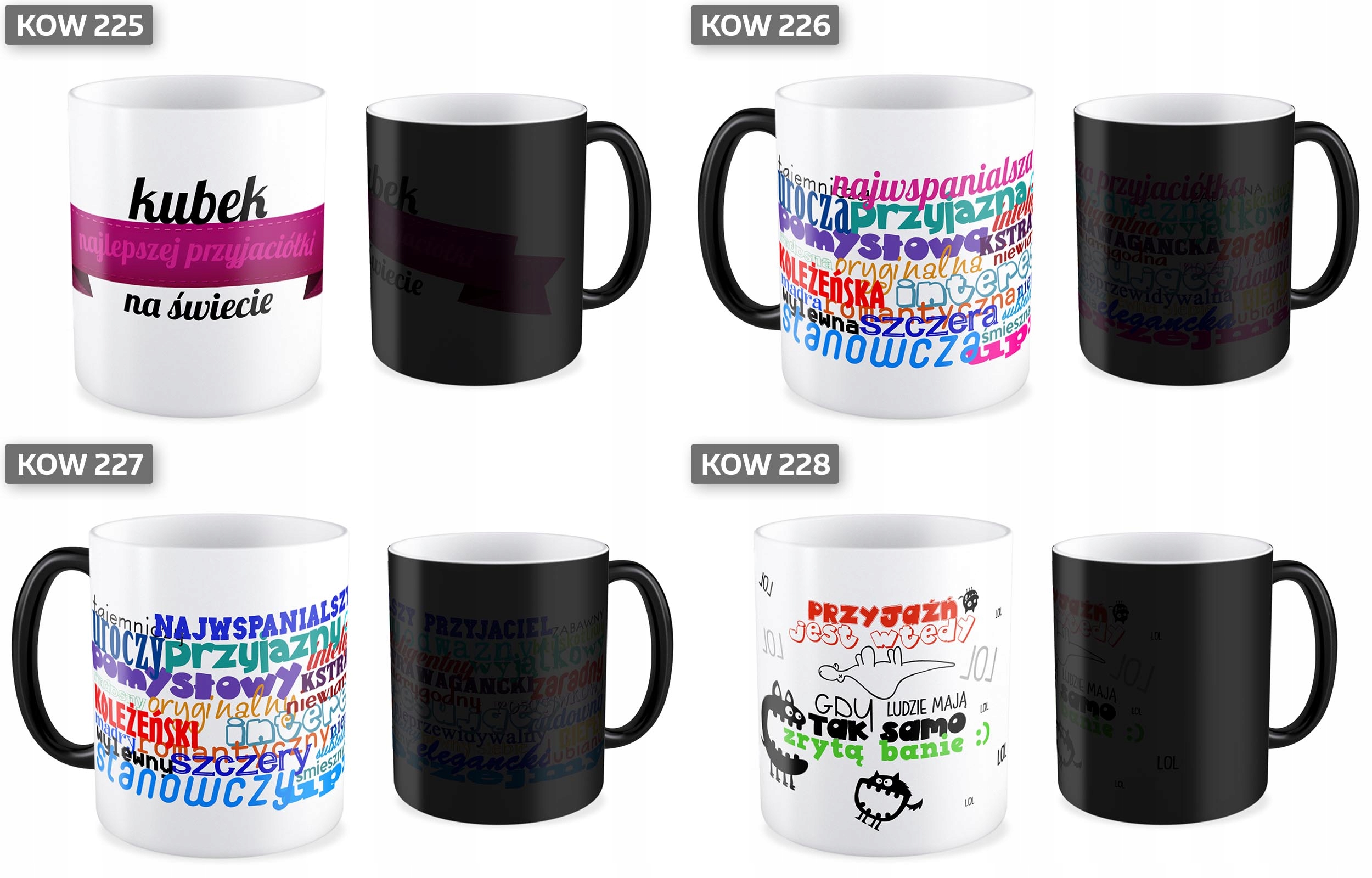 В случае графики с полной печатью, кружка производится специальной техникой, благодаря которой печать применяется снизу на вершину. Это дает уникальный визуальный эффект, который делает нашу чашку продуктом с высоким классом. Никаких белых полос, неровного расстояния между графикой и краем чашки, как для большинства продавцов. После охлаждения затопленной жидкости кружка снова становится черной. Графика рассмотрена примерно на 90%, это один из лучших параметров, доступных на рынке