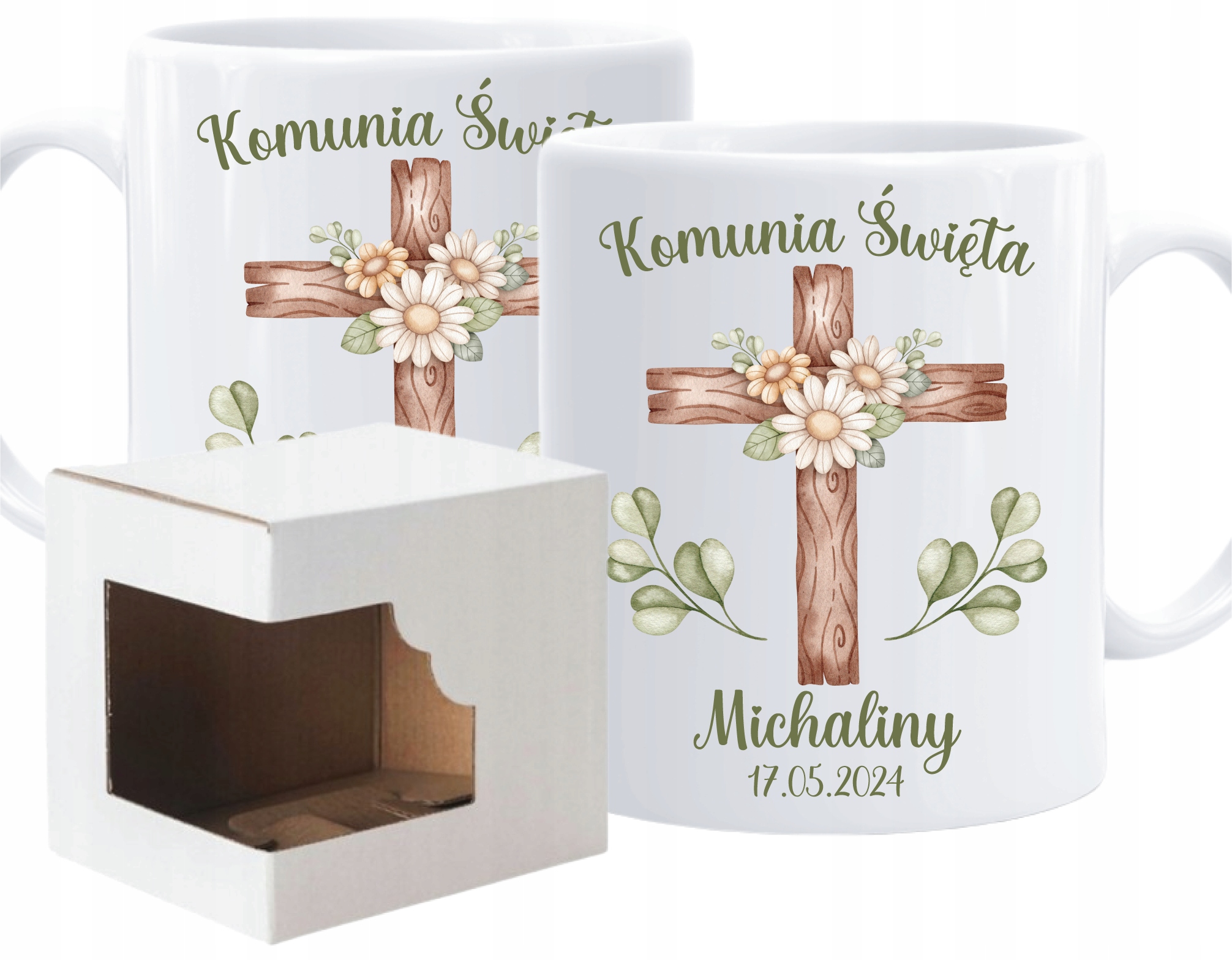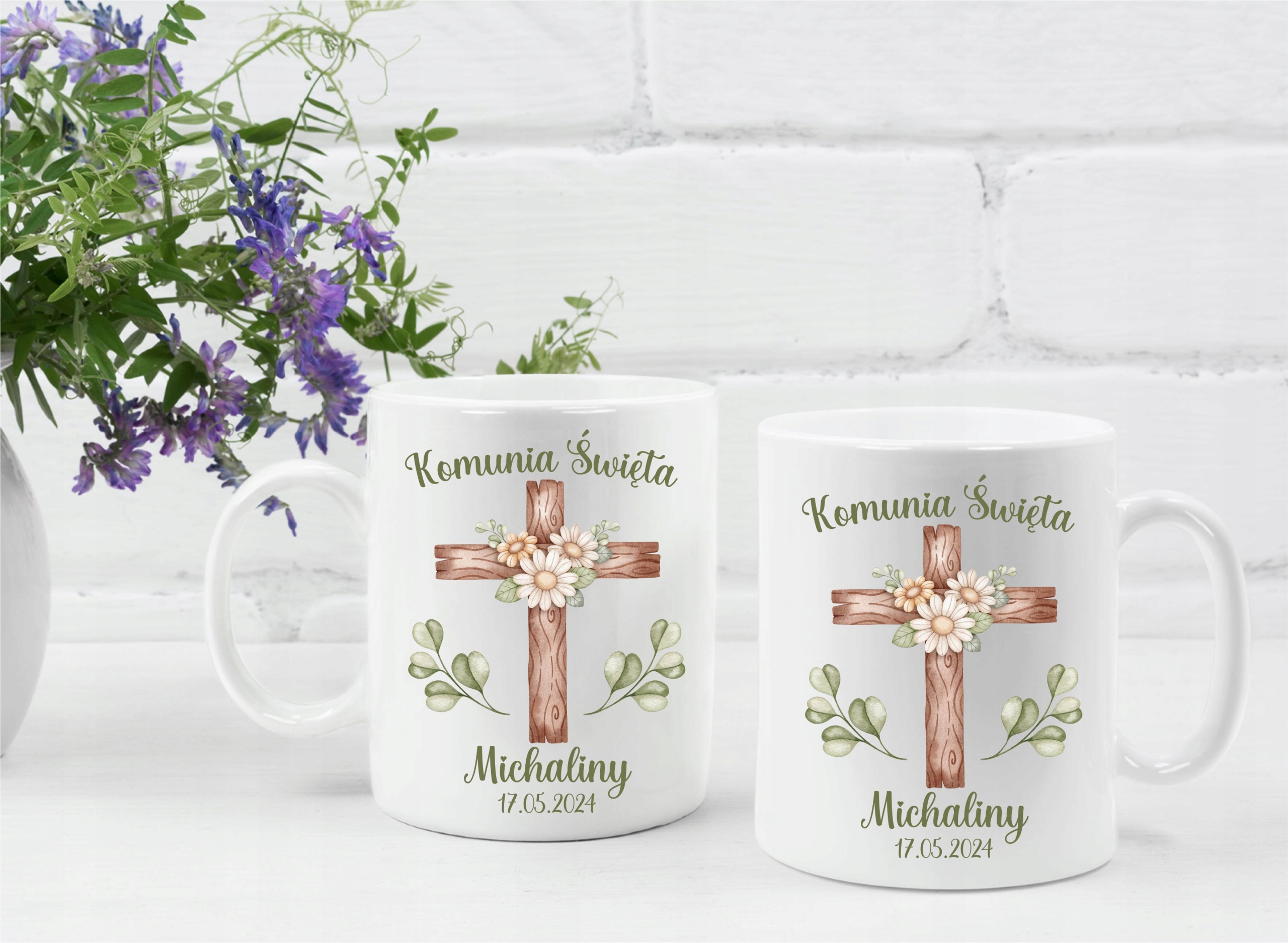 Кружка сувенира первого святого причастия причастия Krzyżyk + имени данные