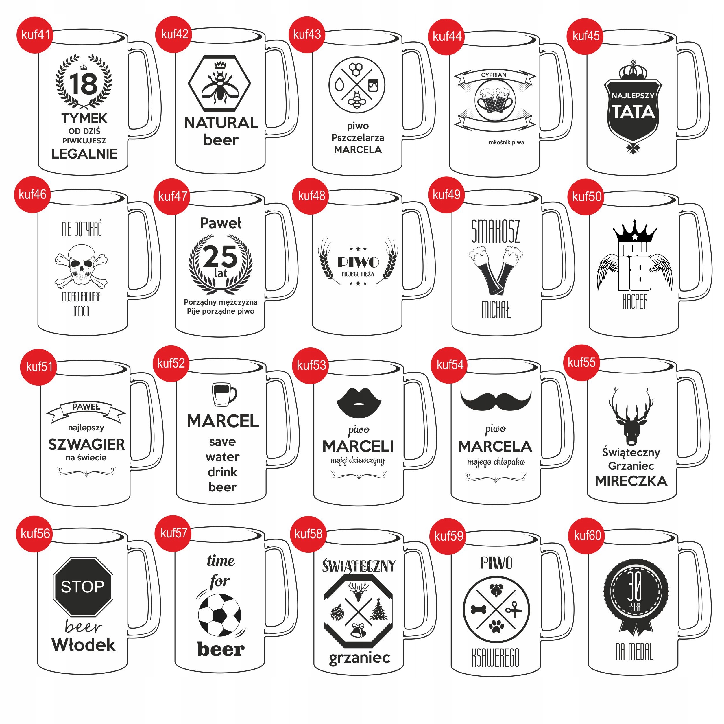 Если вы ищете уникальный подарок для любимого. У нас есть отличное предложение для этого. толстое стекло с собственной гравировкой. На кружке мы можем выгравировать любой текст или графику. Лазерная гравюра характеризуется отличным качеством и совершенством. Ниже приведены примеры шаблонов, которые могут быть свободно изменены и объединены друг с другом. Также возможно реализовать свои собственные идеи для уникального подарка. Пивная кружка с гравировкой идеально подходит для таких праздников, как: День имени, день рождения, День отца, День дедушки, бакалавриат, по случаю Дня святого Валентина, по случаю 18 -го дня рождения и многих других ...