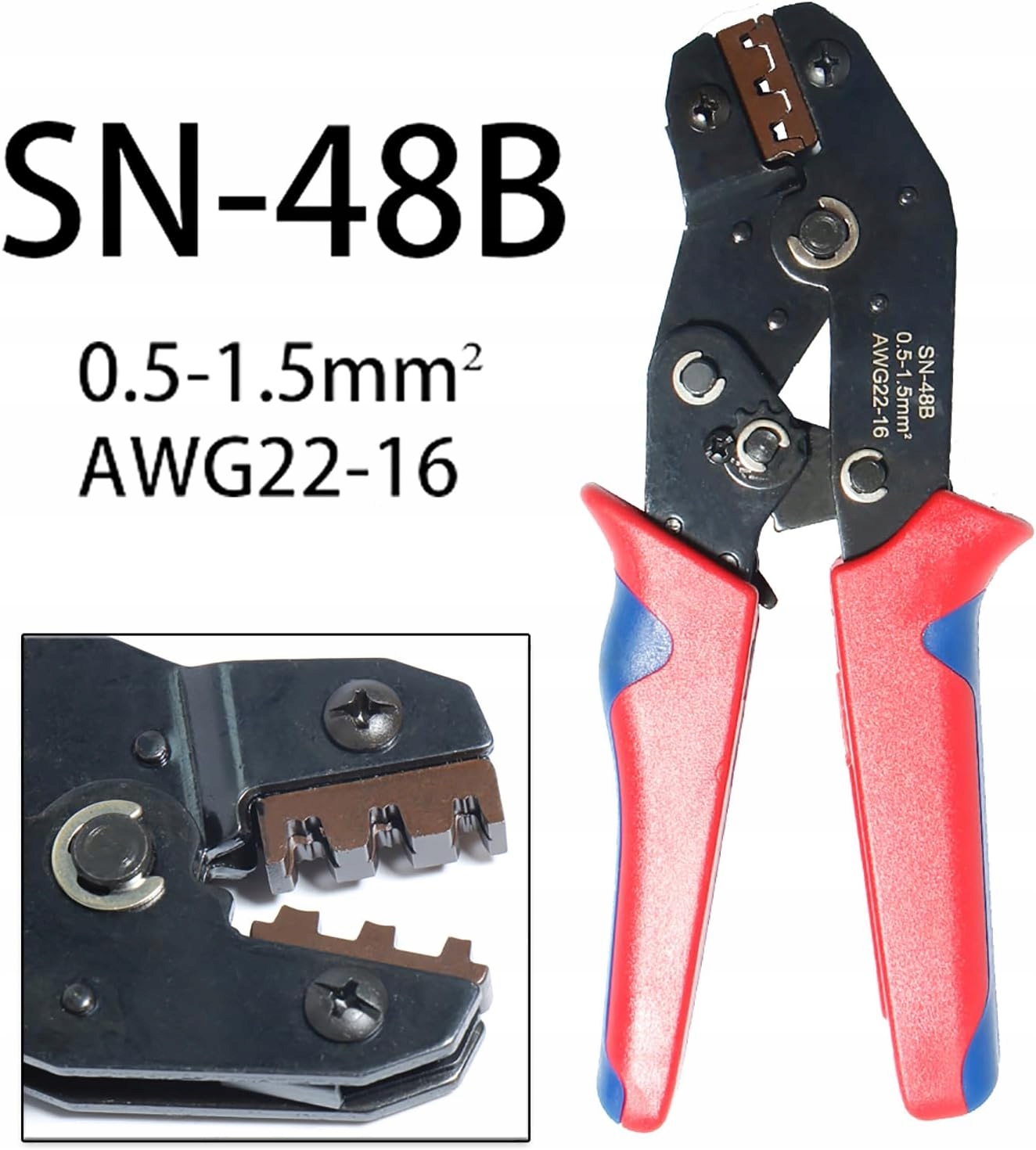 изготовлена из высокоуглеродной стали и изолированной резины tpu b>, и конструкция механизма храпового механизма помогает уменьшить прочность, необходимую для хорошо сжима. Диапазон зажима составляет AWG22-16, 0,5-1,5 мм², подходит для 2,8 мм, 4,8 мм, 6,3 мм и шариковых разъемы и 3,5 мм шариковых разъемов, 4,0 мм
