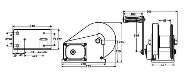 имеет автоматический механизм фиксации троса, который сохраняет постоянное положение сразу после отпускания рукоятки. Тем самым исключается хлопотное переключение направления работы лебедки.