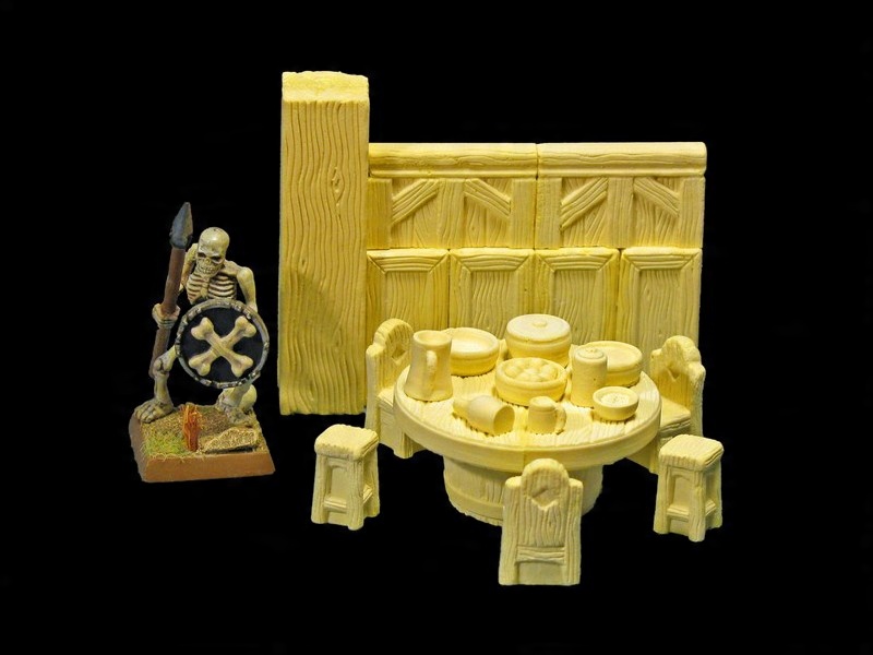 Элементы имеют масштаб 28 мм, прекрасно вписываются в различные боевые системы, ролевые системы, настольные игры. В качестве дополнения к модели гостиницы, дома или подземелья.
