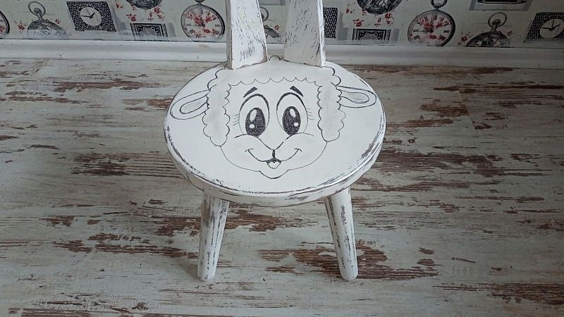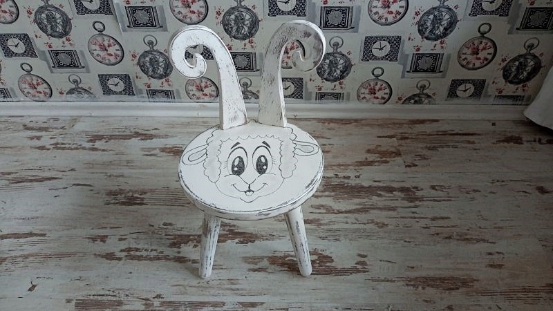 Деревянный детский стул, табуретка в стиле шебби-шик.