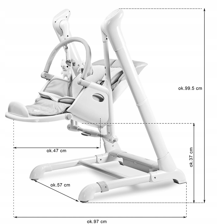 Krzesełko do karmienia 3w1 Huśtawka Leż Bujaczek Carrello Cascata 3w1 Grey