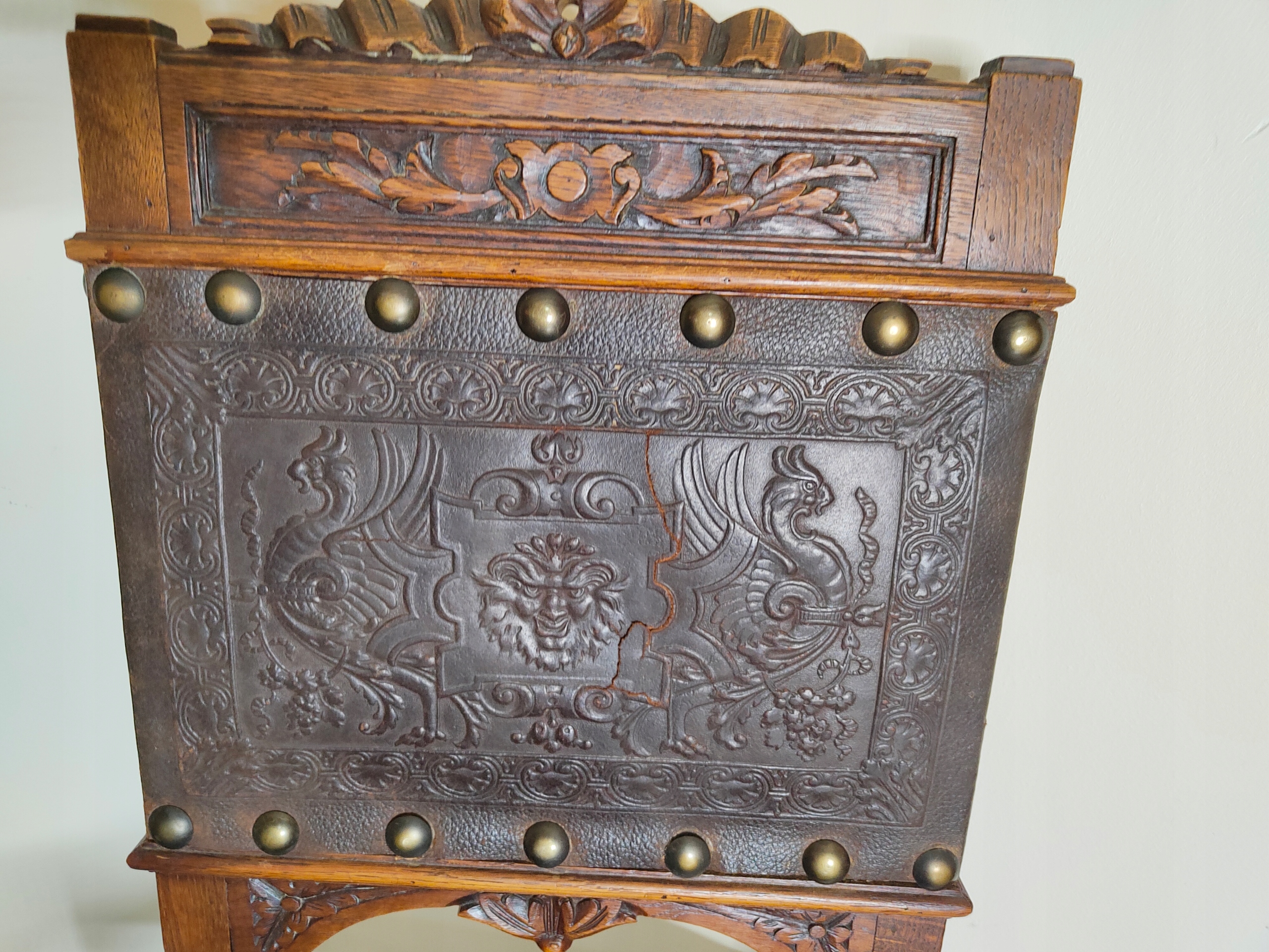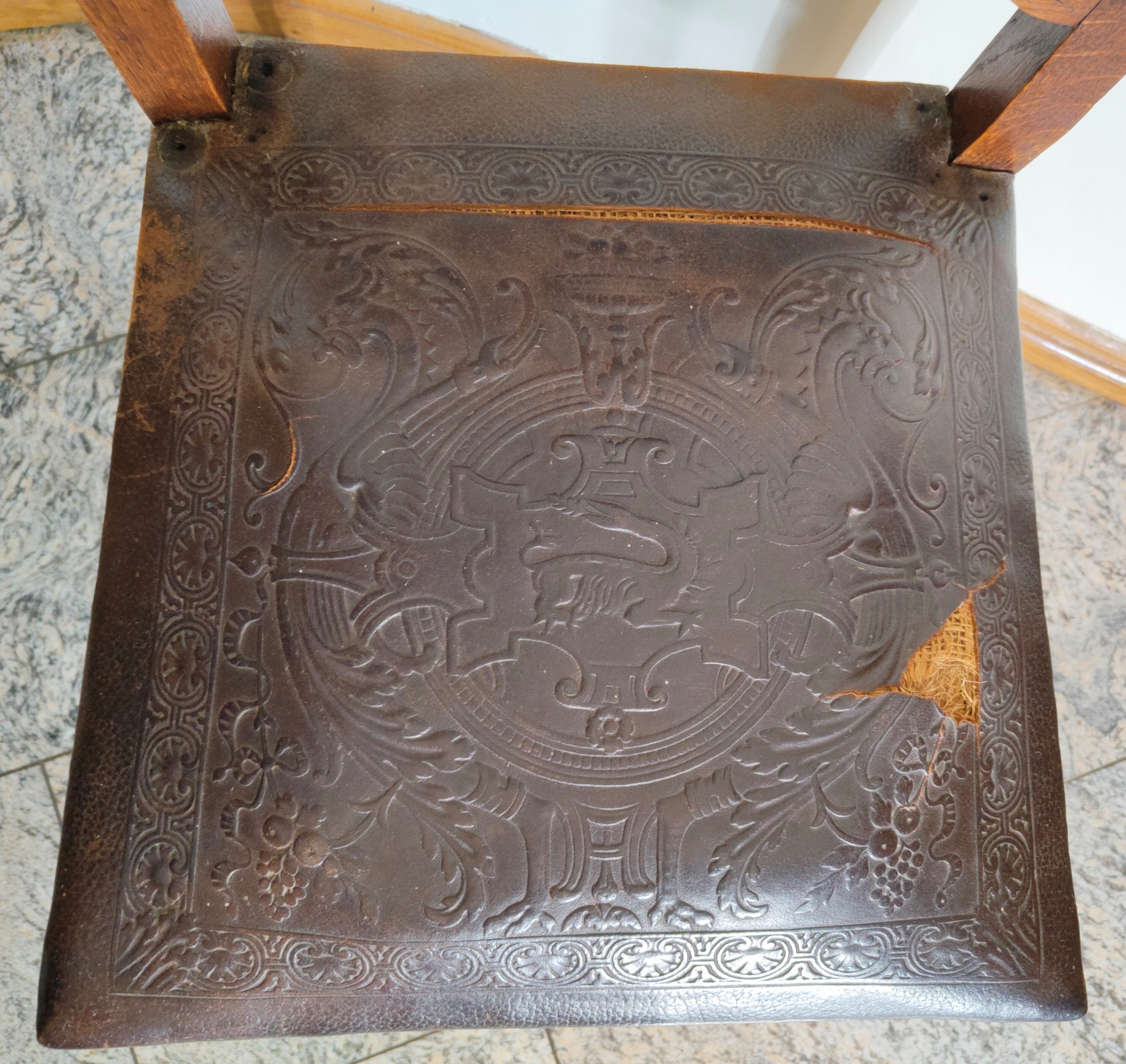 СТУЛ, гербы на коже АНТИЧНЫЙ, красивый, РЕЗНОЙ, ручная работа