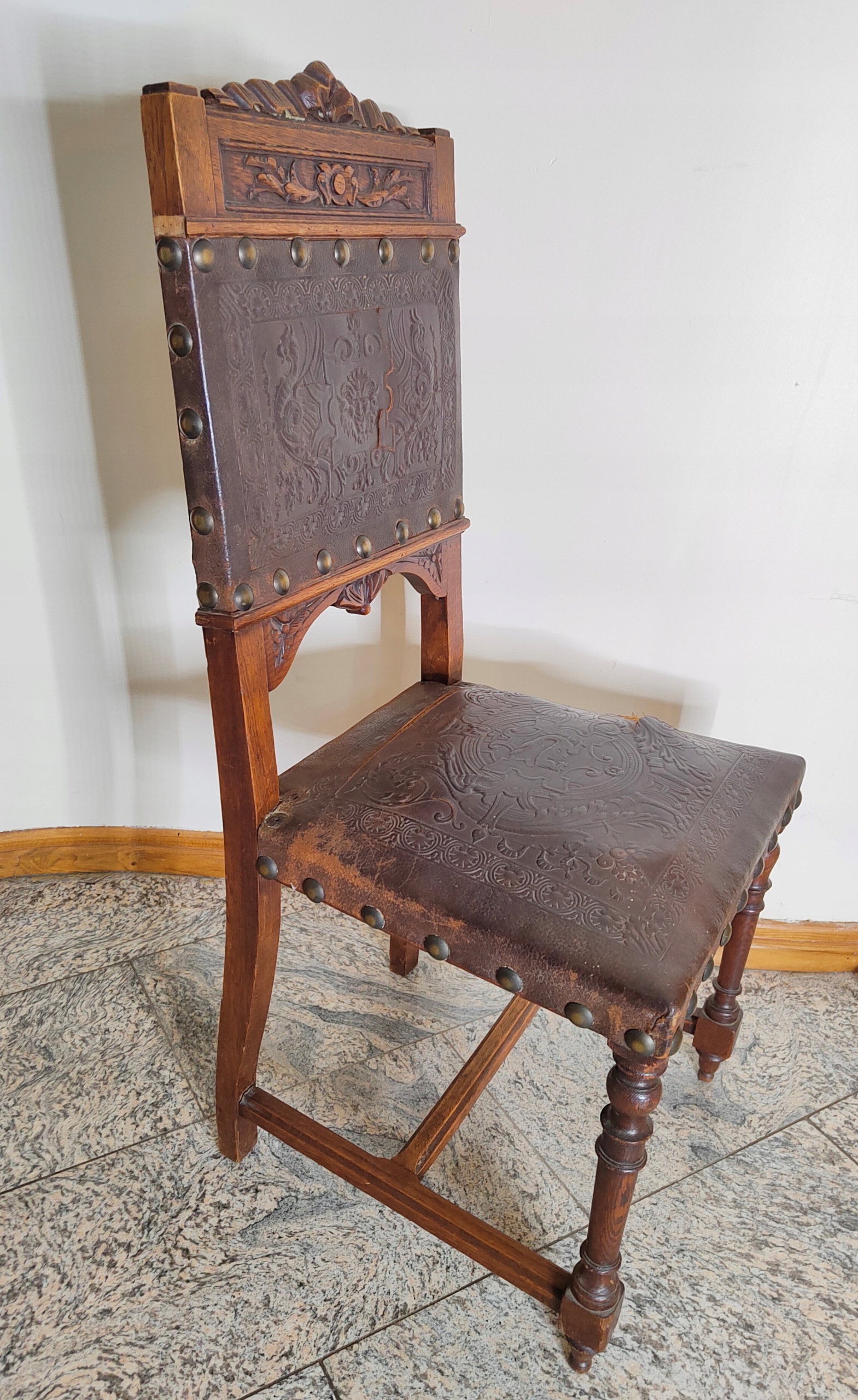 KRZESŁO herby na skórze ANTYK śliczne RZEŹBIONE