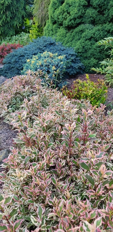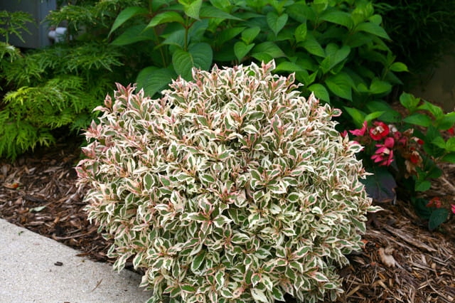 - Дополнительные преимущества: сорт карликовый кустарник, компактная форма, разноцветные листья и изменчивость окраски в зависимости от сезона. Благодаря очень декоративным листьям этот сорт привлекателен на протяжении всего сезона, а не только во время цветения. . Помимо интересной окраски листьев, завораживающего цветения и привлекательной формы, его цветки привлекательны для пчел и бабочек.