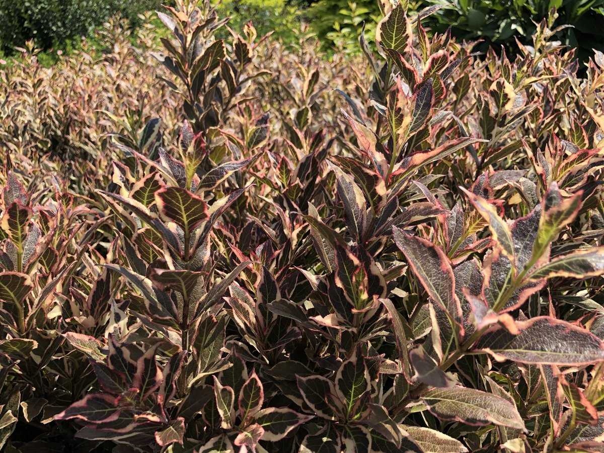 - Окраска листьев: кремово-зеленая, края окрашены в кремово-розовый, с широким краем. В конце лета и осенью листья постепенно становятся пурпурно-фиолетовыми, а кремово-розовые края становятся пурпурными.
