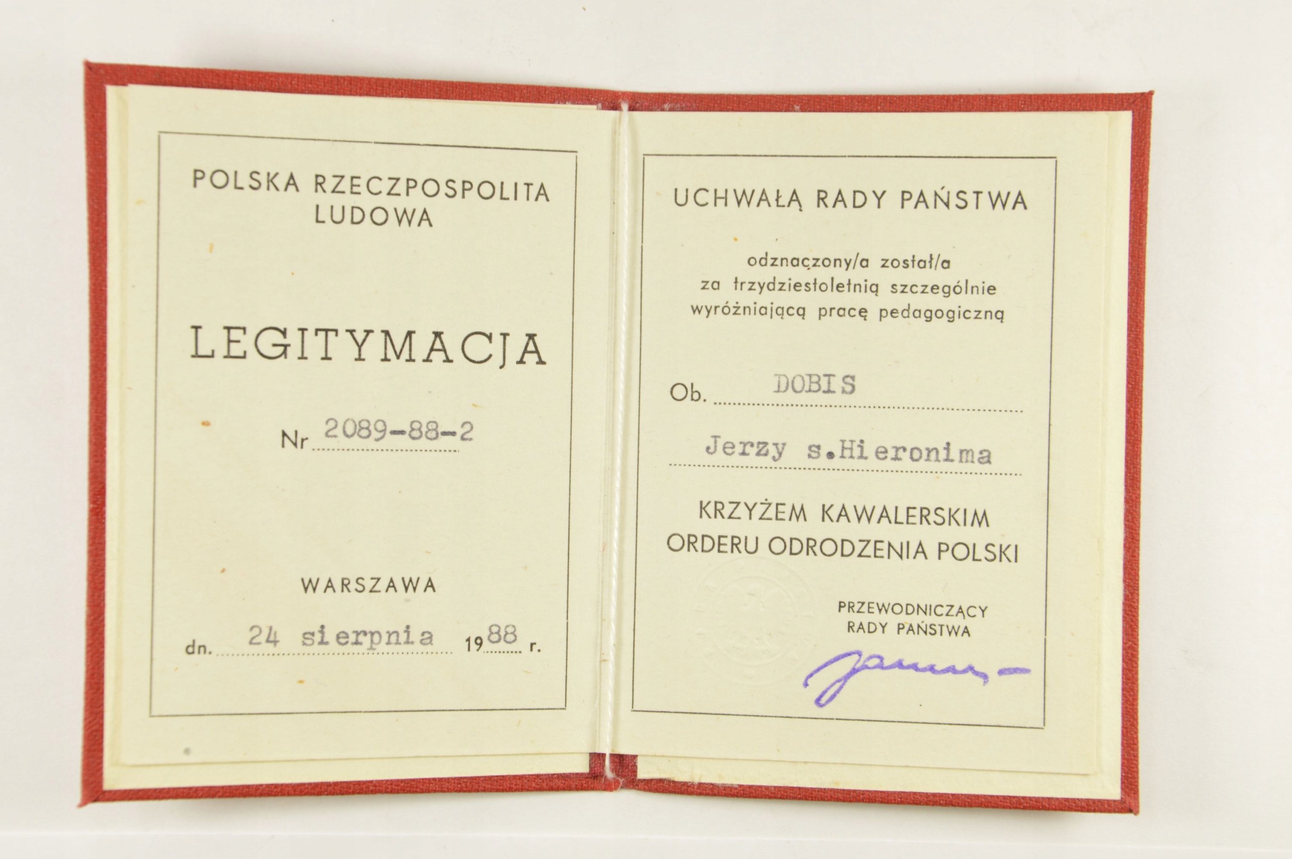 KRZYŻ KAWALERSKI ORDERU ODRODZENIA POLSKI LEGITYMACJA 1988 r. ŁADNY