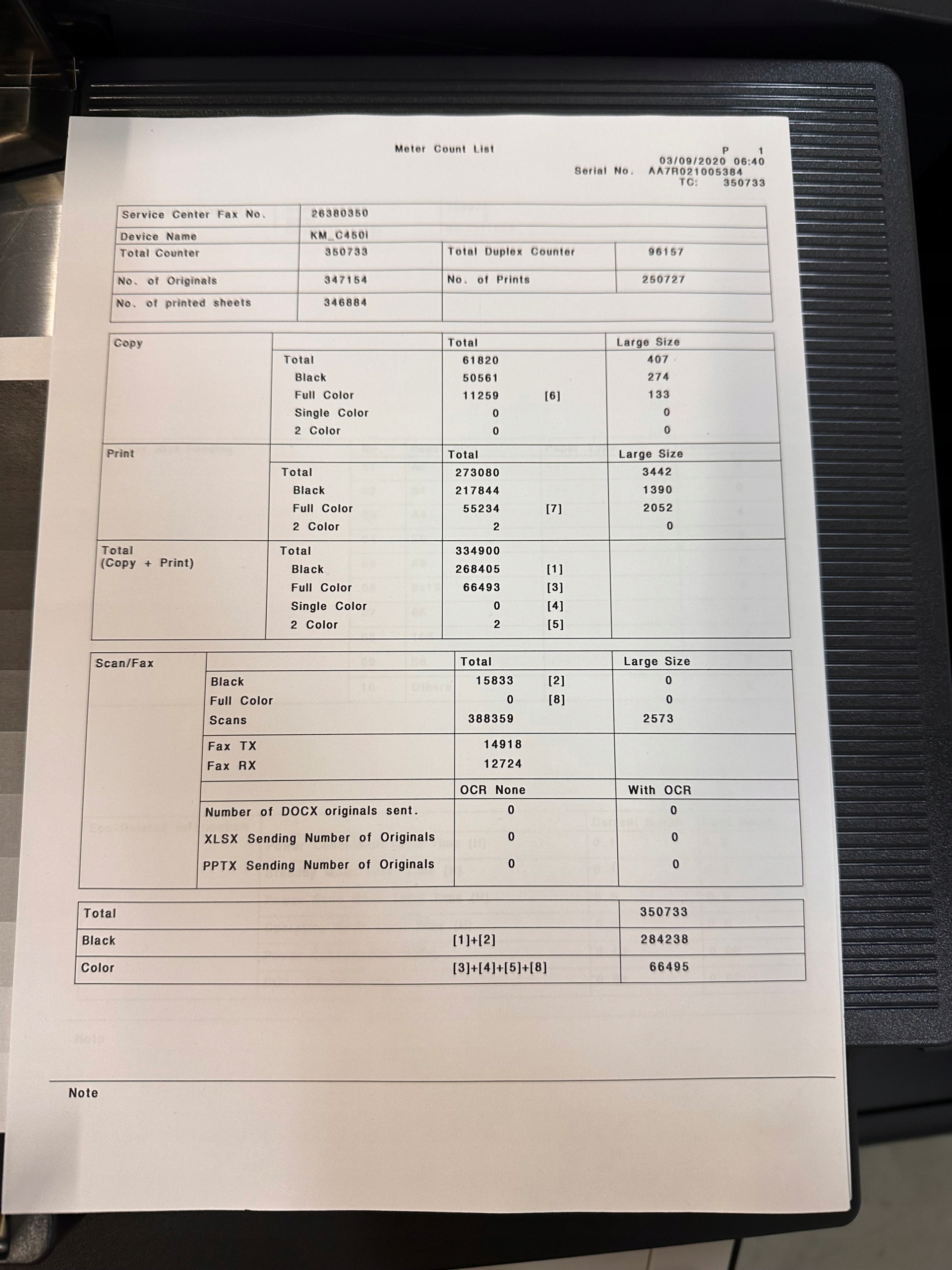 Копировальный аппарат Konica Minolta BH C450i — общий пробег 350 000 злотых