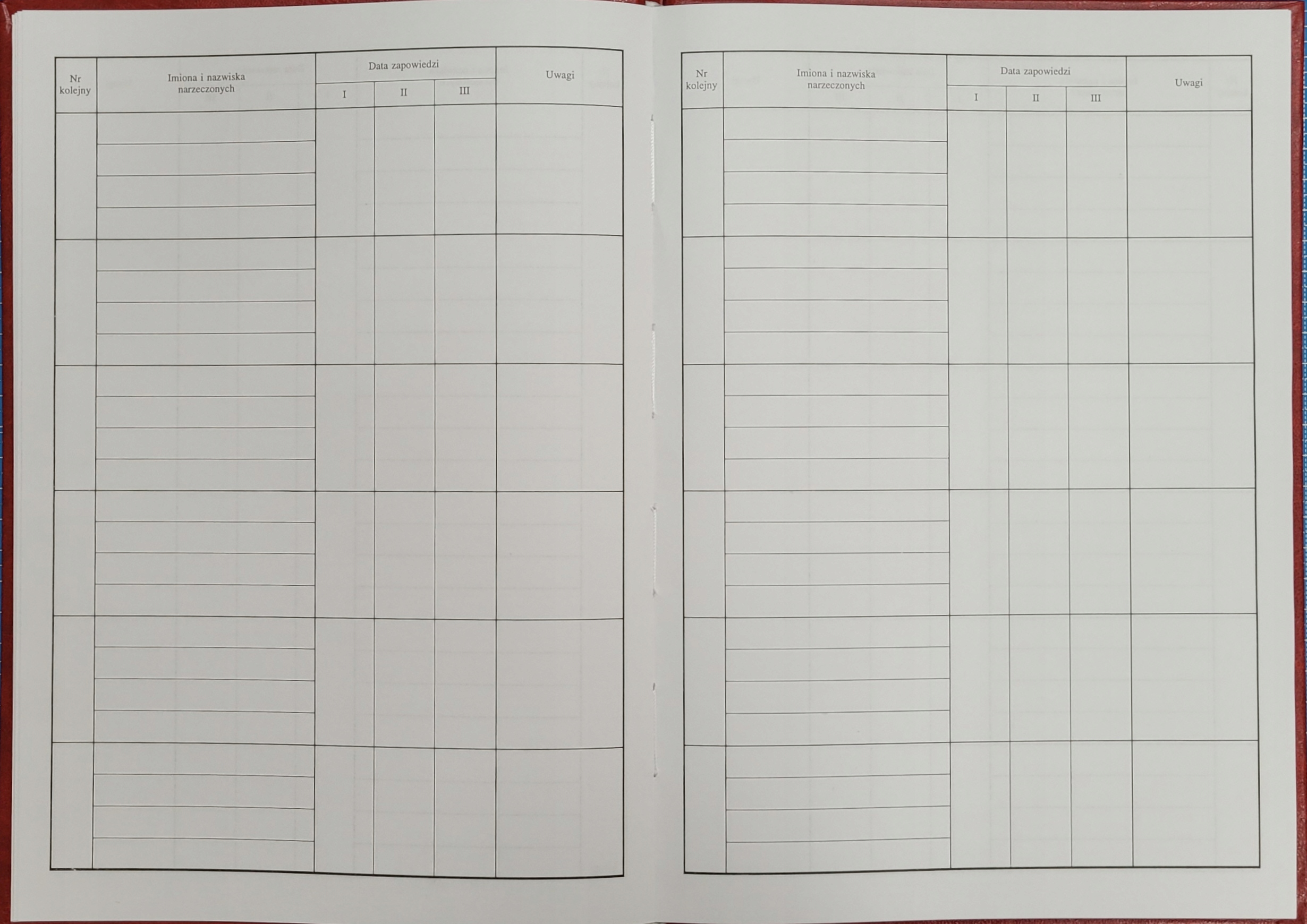 KSIĘGI PARAFIALNE KSIĘGA ZAPOWIEDZI KANCELARIA