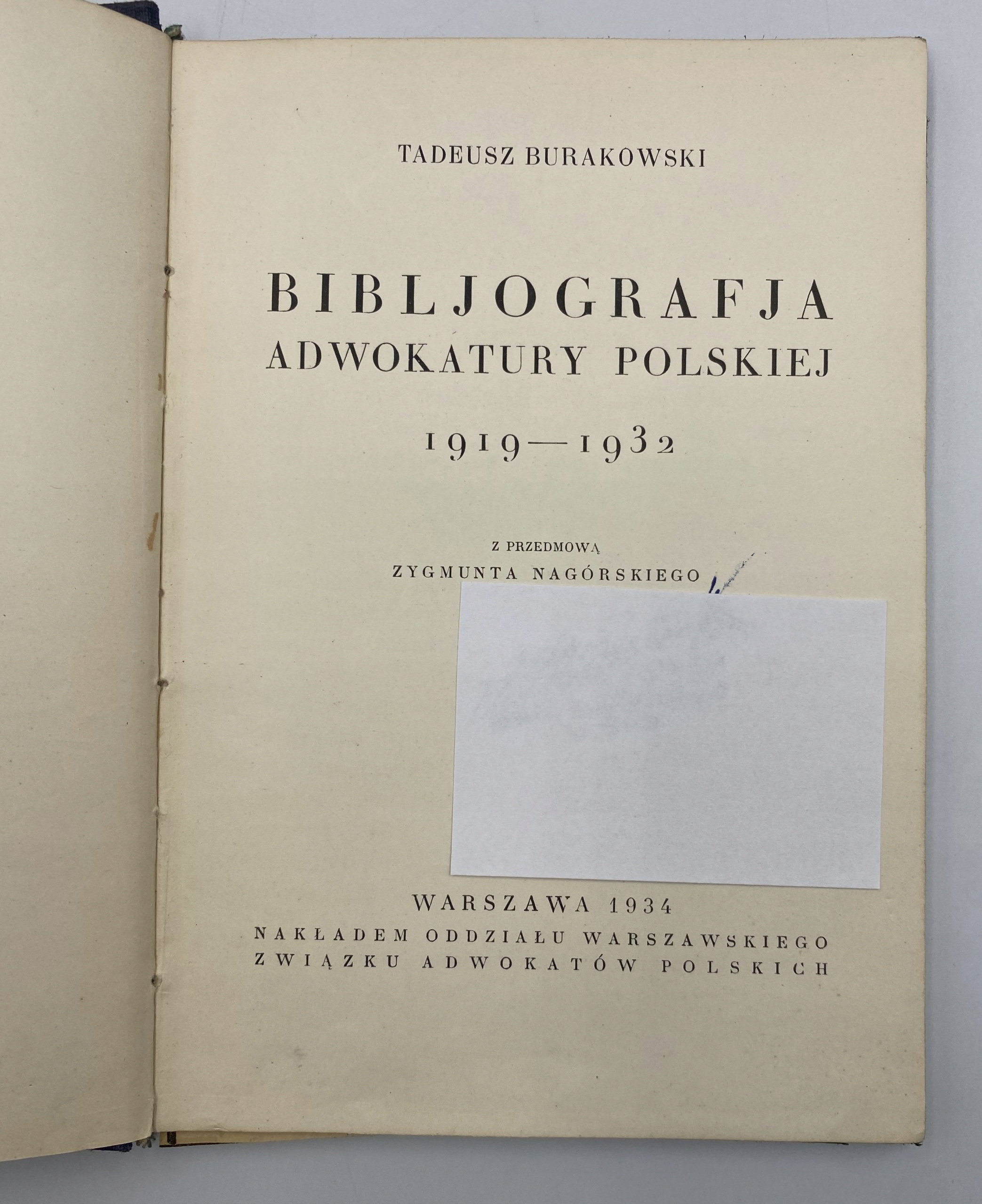 Książka Bibljografja adwokatury polskiej 1919-1932 T. Burakowski 1934 r.
