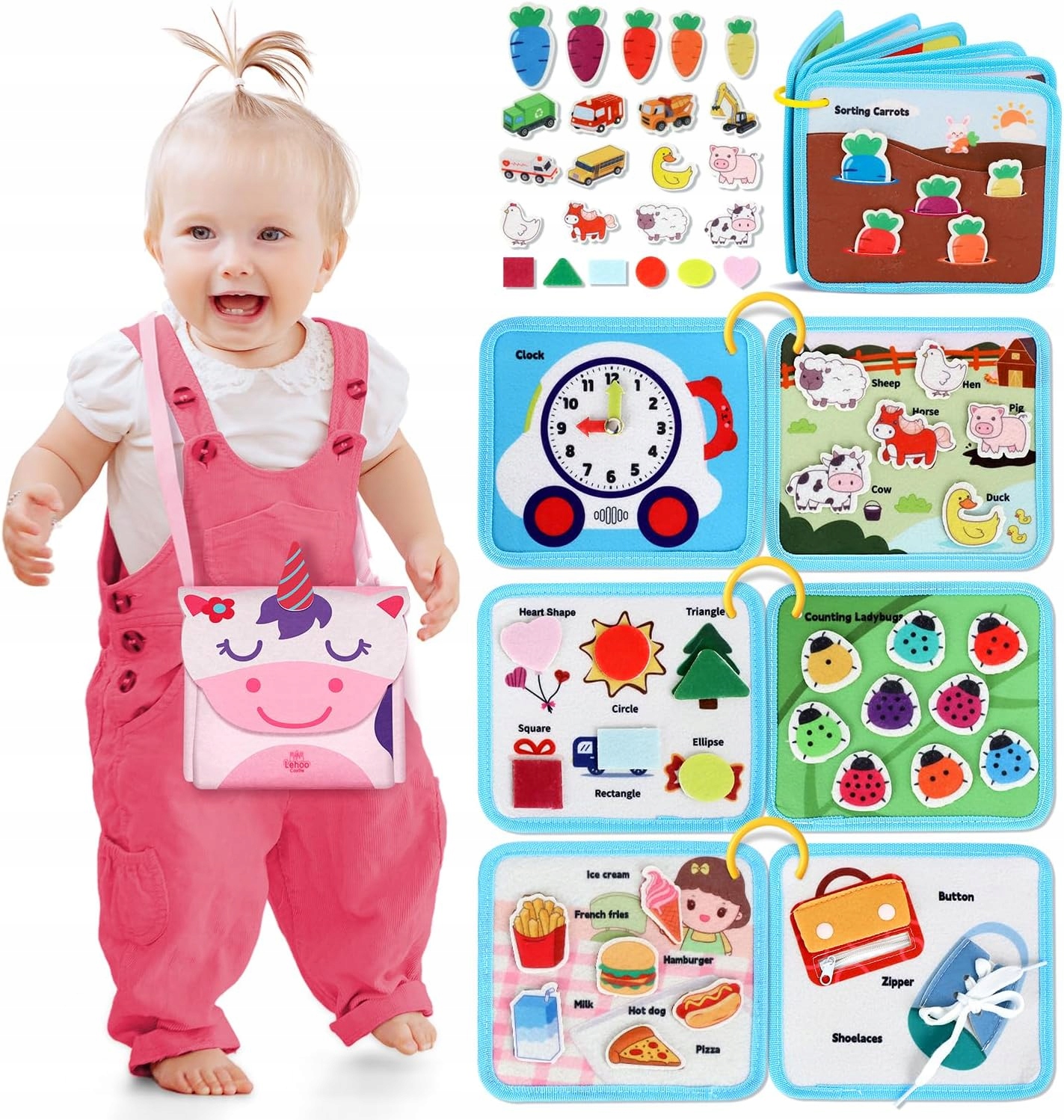 KSIĄŻKA FILCU KSIĄŻECZKA SENSORYCZNA MONTESSORI 3D 11TEMATY ZABAWKA 20*20CM