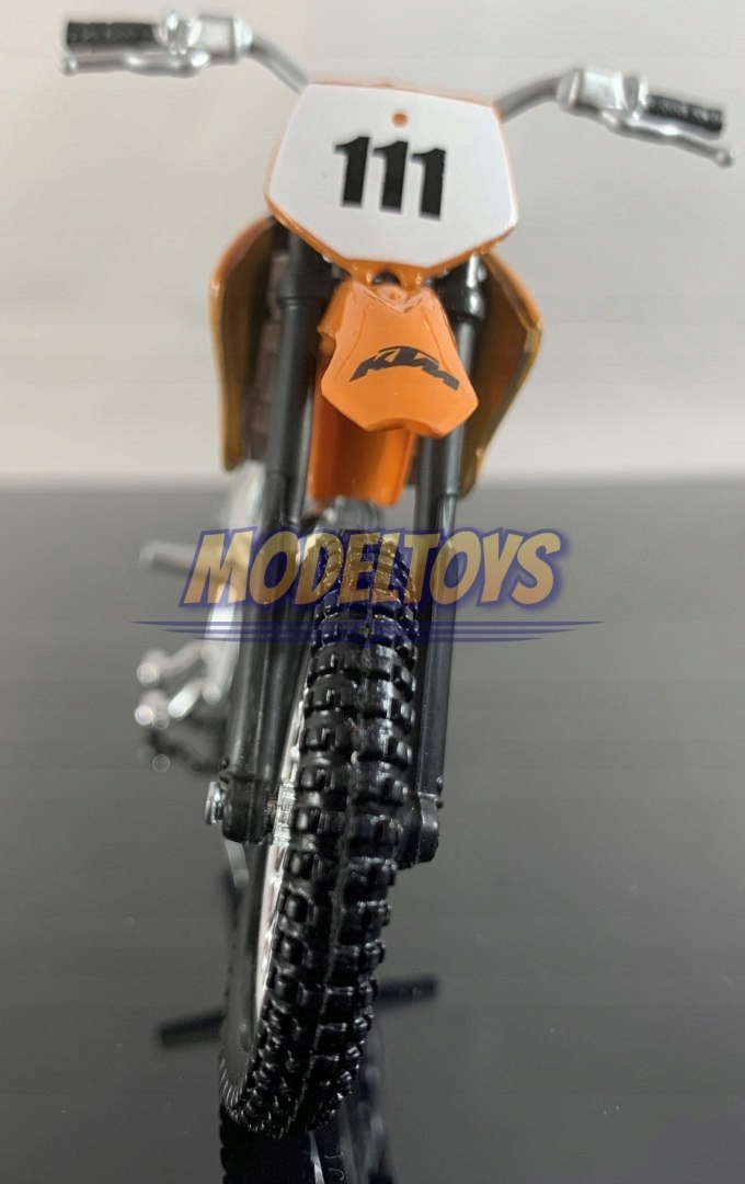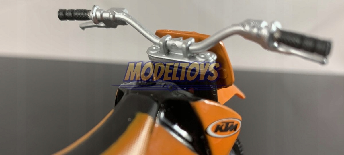 KTM Модель мотоцикла характеризуется вниманием к деталям. У него есть движущиеся элементы: колеса, рулевое колесо, заднее маятник и заднее колесо