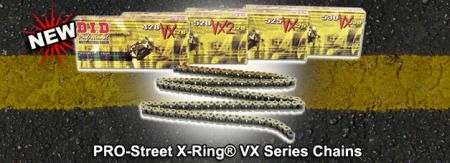 Цепи серии VX чаще всего выбирают пользователи как дорожных, так и эндуро-мотоциклов, поскольку они обладают высокой прочностью и длительным сроком службы при относительно невысокой цене.