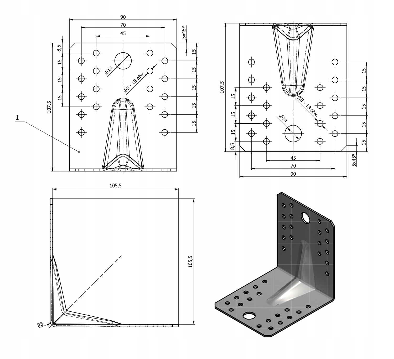 Kątownik łącznik ciesielski montaż 105x105x90x2,0