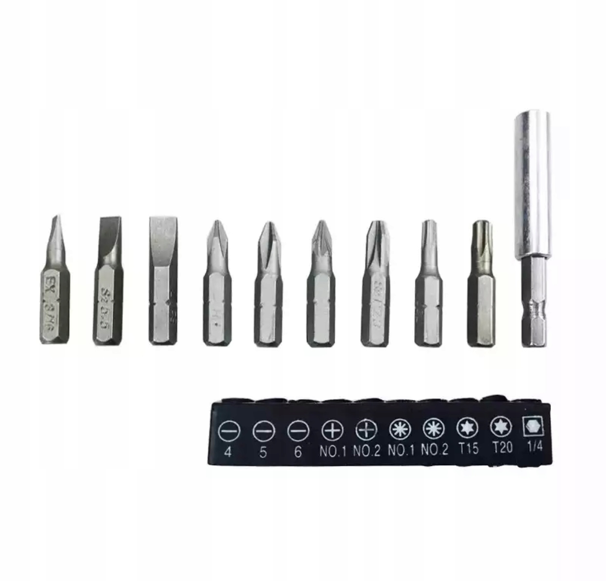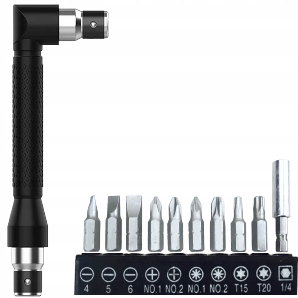 KĄTOWY UCHWYT WKRĘTAK DO KOŃCÓWEK BITÓW 1/4 MAGNETYCZNY ADAPTER + BITY 10x