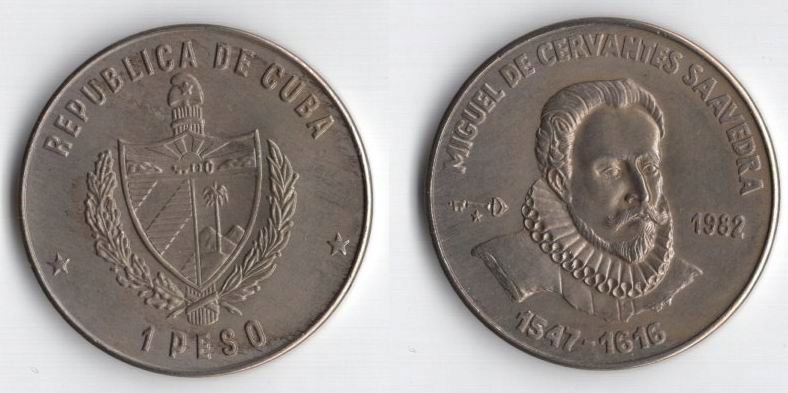 КУБА 1982 1 ПЕСО СЕРВАНТЕС РЕДКАЯ