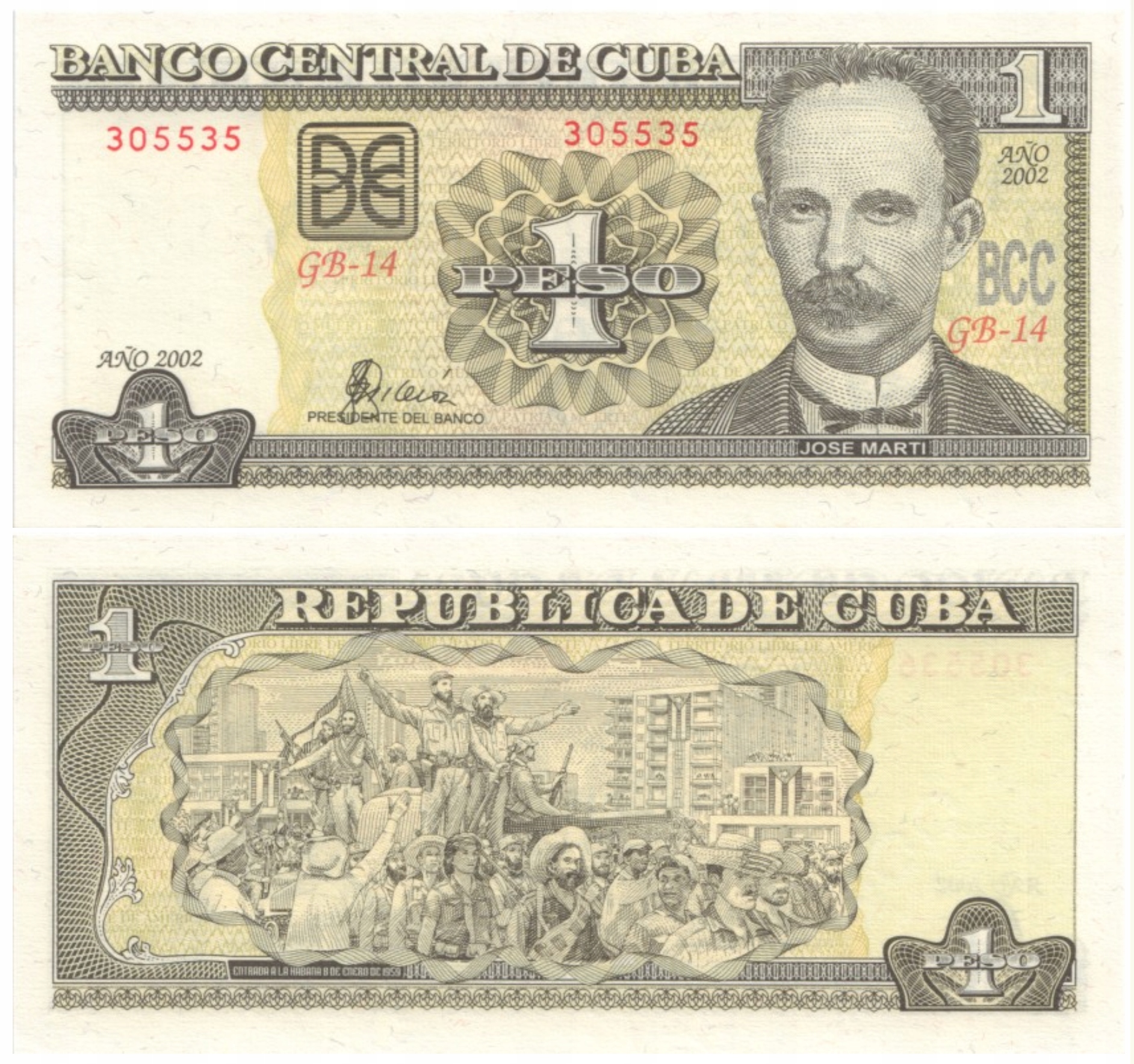 Kuba Cuba 1 Peso 2002 P-121b UNC Jose Marti