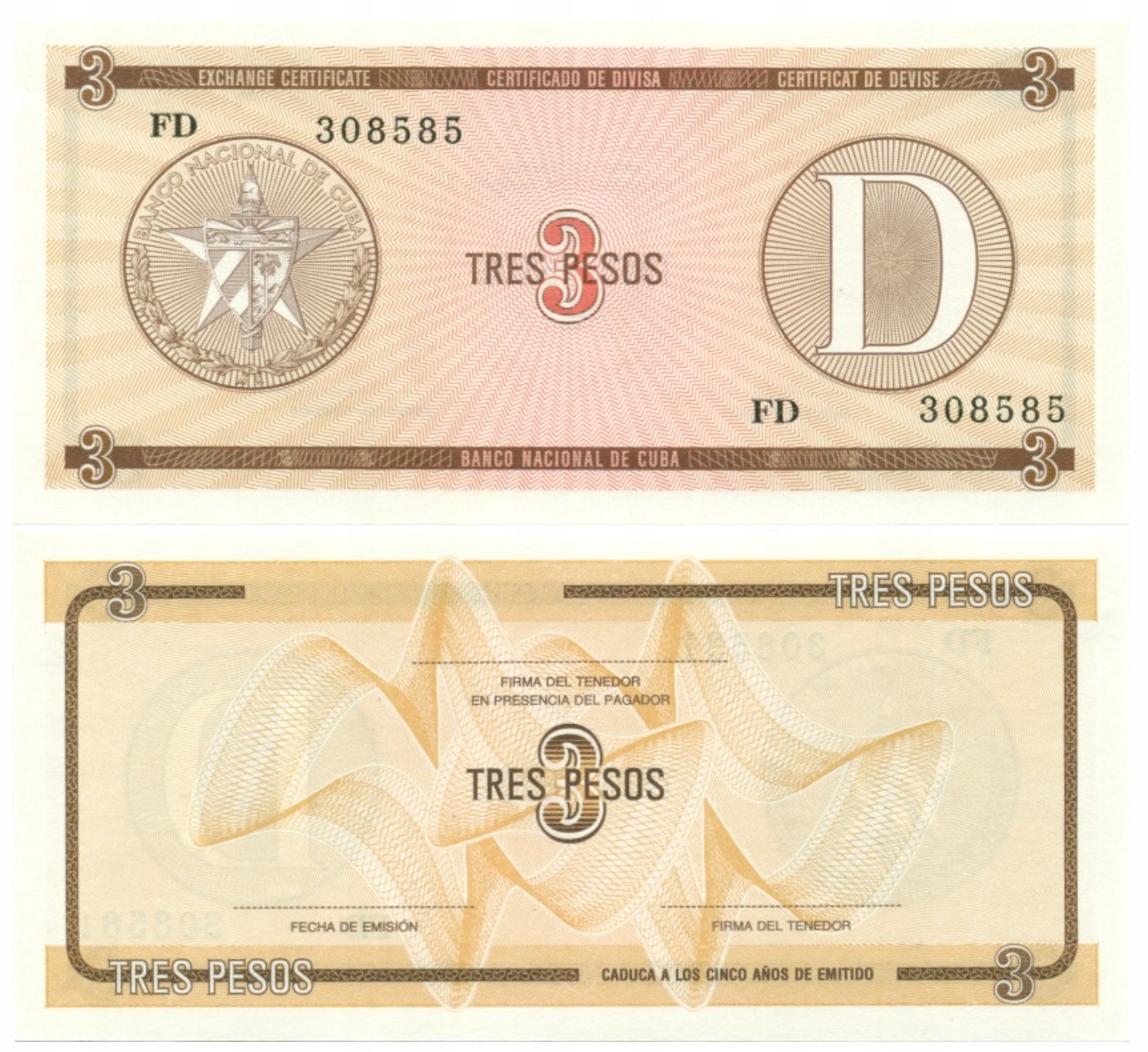 Kuba Cuba 3 Pesos 1985 P-FX 33 UNC Series D